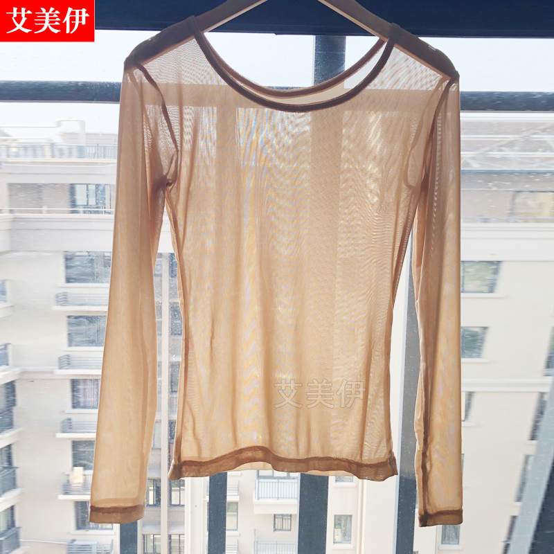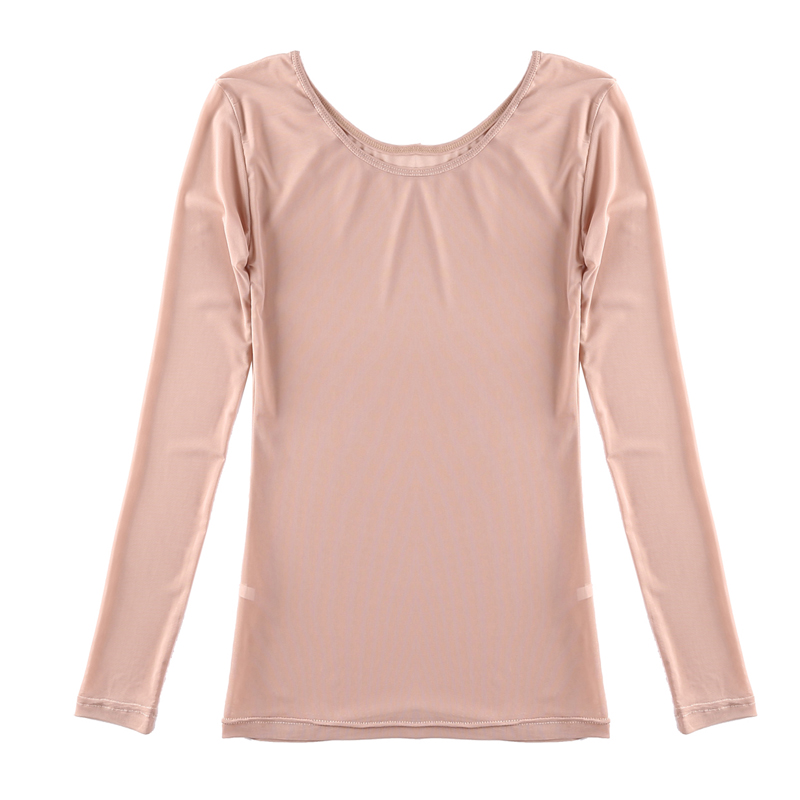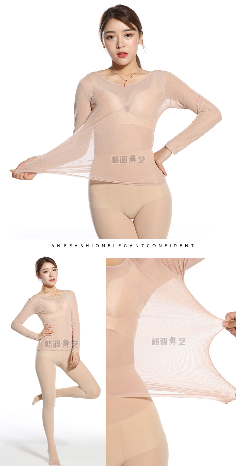 Весна и осень ультратонкий прозрачный цвет кожи цвет сетка базовая рубашка перспектива Солнце Защита Топ Мясо Цвет Танцевальная рубашка Большой размер внутренний