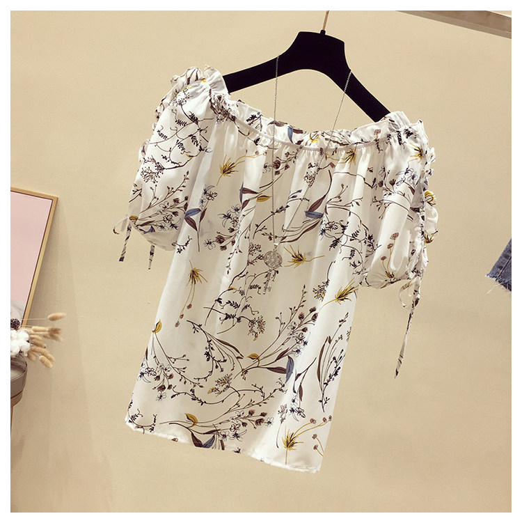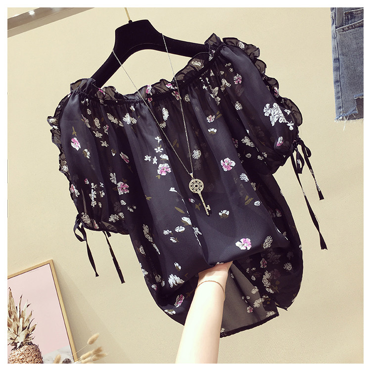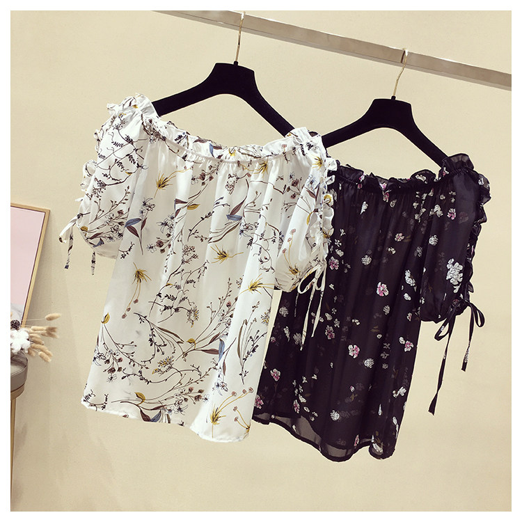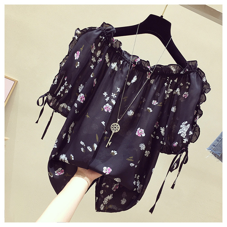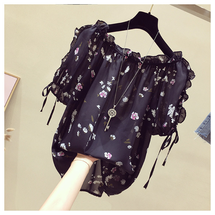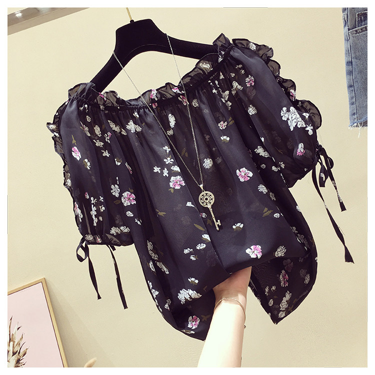 Летняя модная короткая шифоновая футболка, в западном стиле, цветочный принт, оверсайз, короткий рукав, открытые плечи