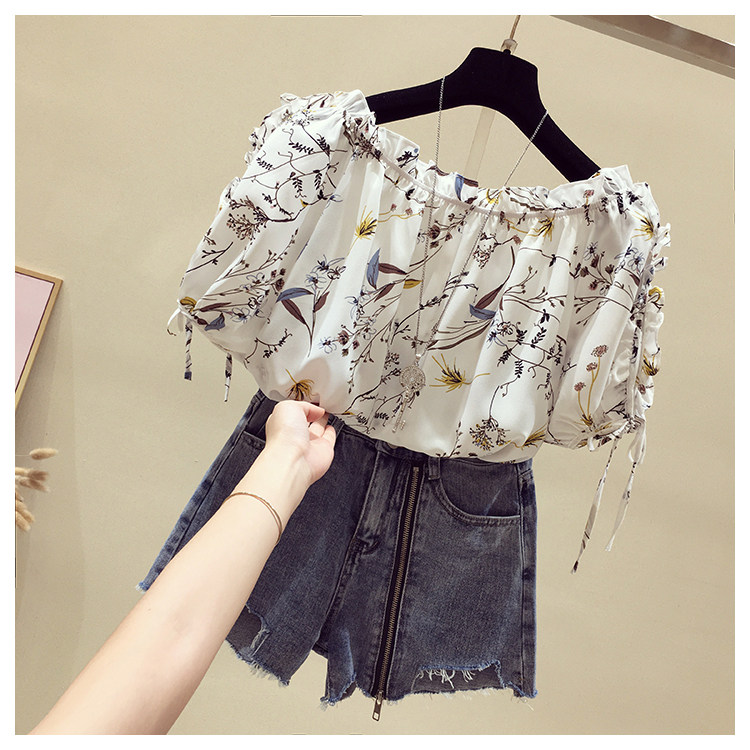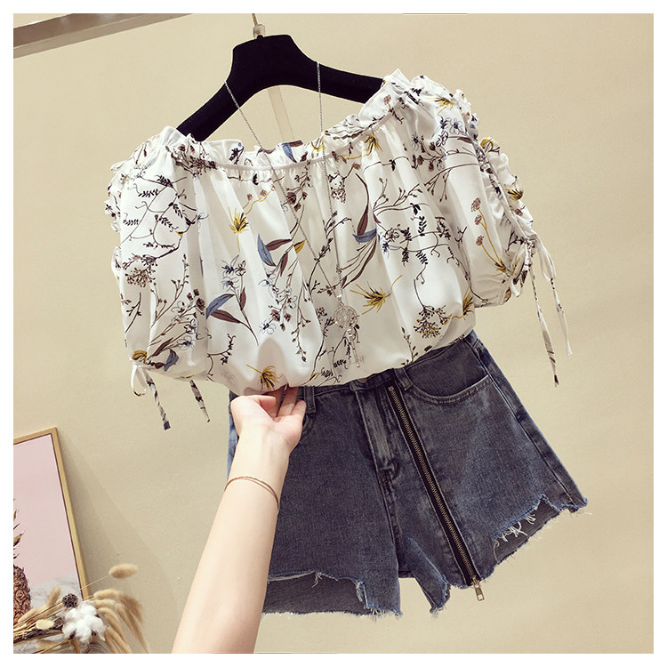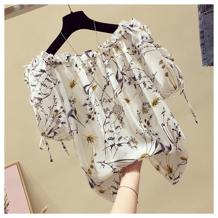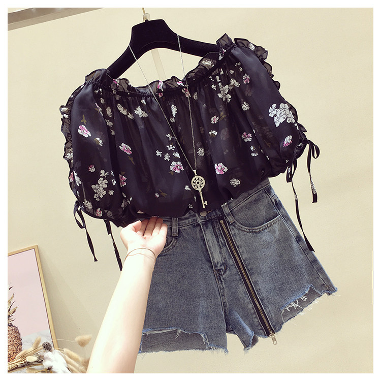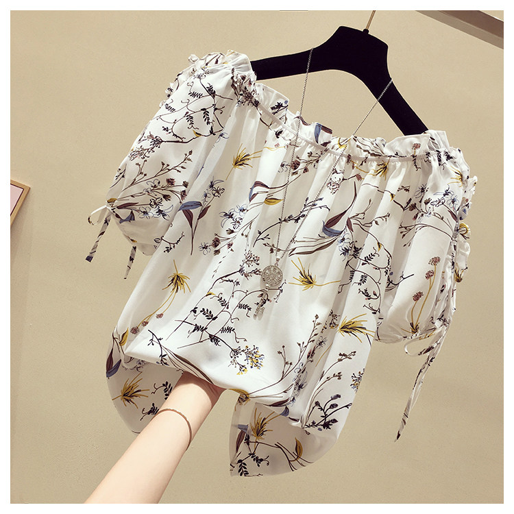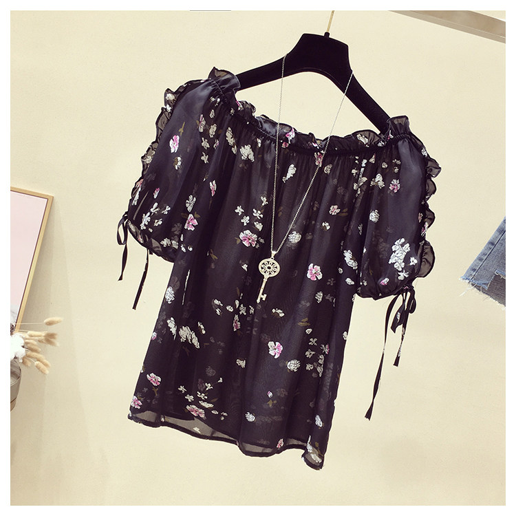 Летняя модная короткая шифоновая футболка, в западном стиле, цветочный принт, оверсайз, короткий рукав, открытые плечи