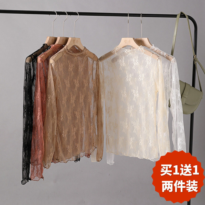 紫素 Кружевной осенний сексуальный лонгслив, высокий воротник, в западном стиле