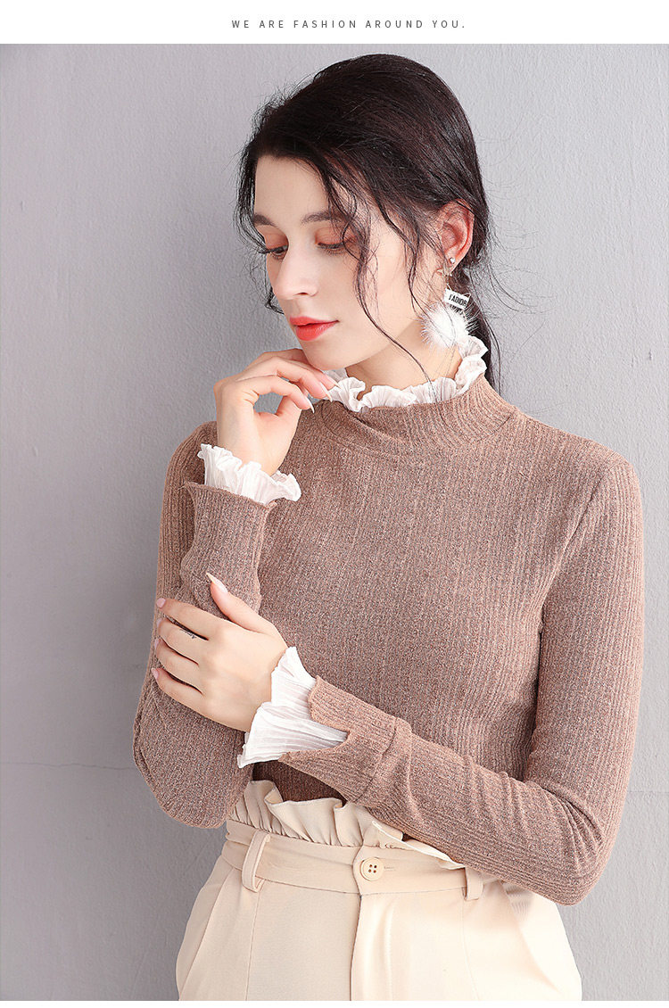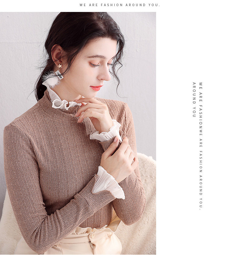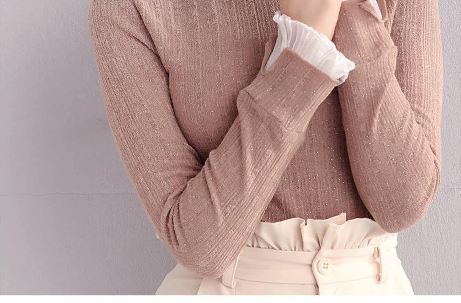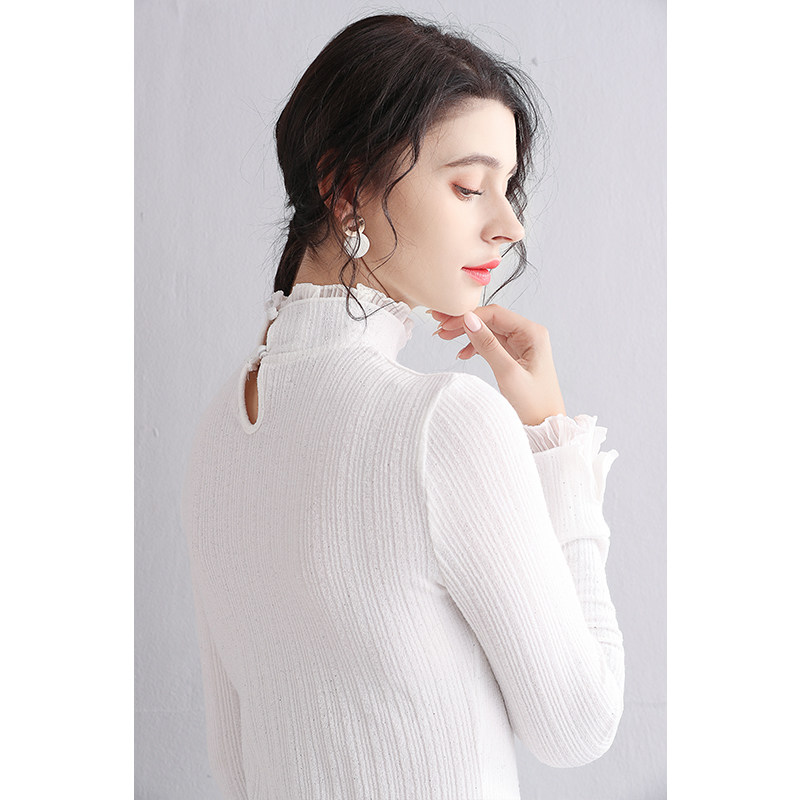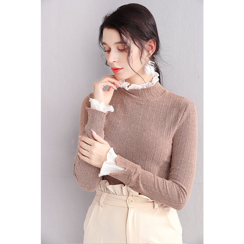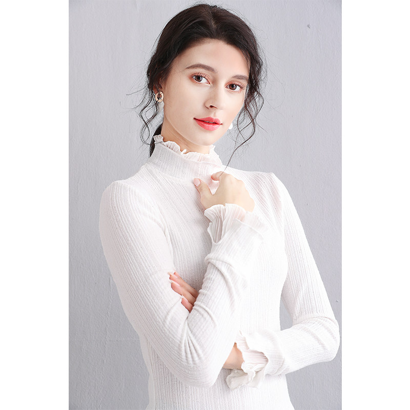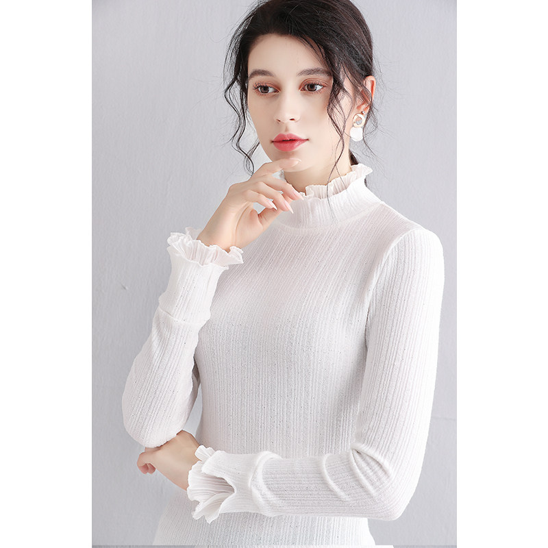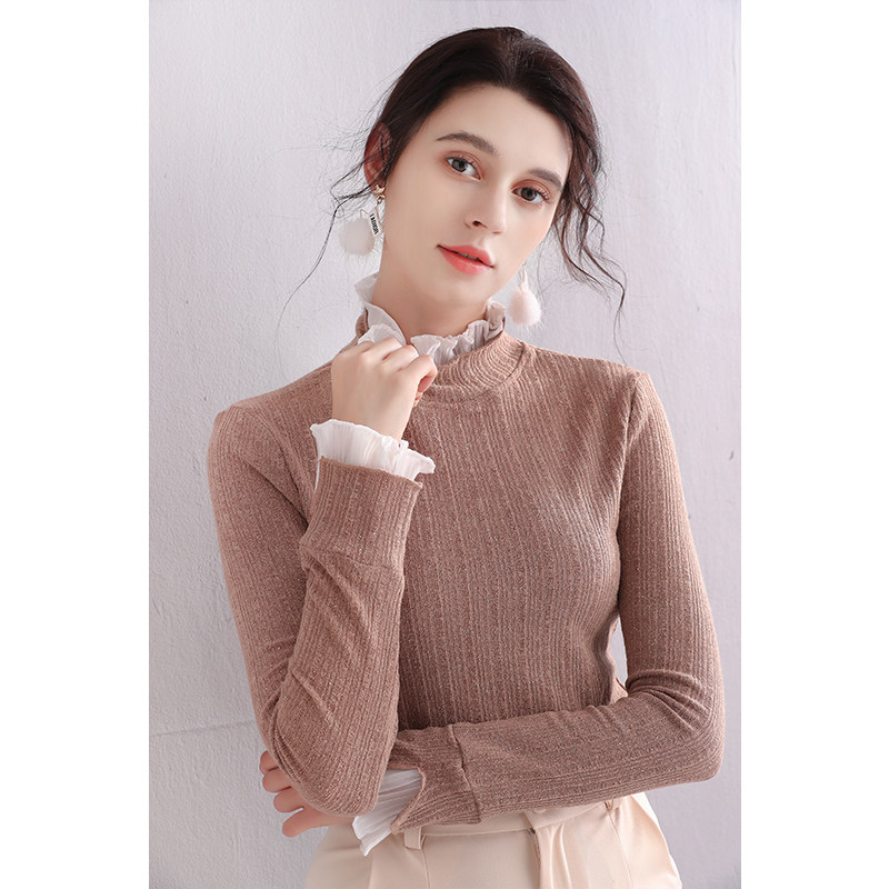 Трикотажный кружевной шелковый приятный телу демисезонный удерживающий тепло лонгслив, 2019, в западном стиле, большой размер