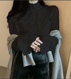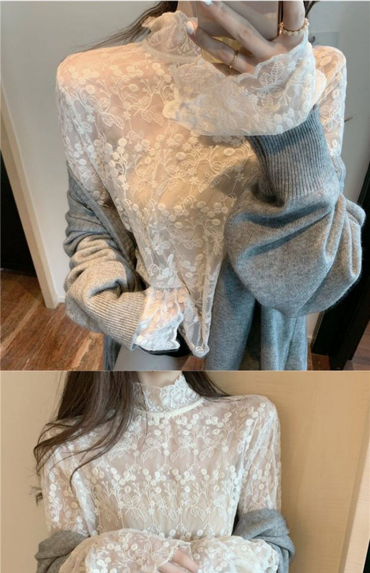 Демисезонный кружевной мегафон, базовый приятный телу лонгслив, в корейском стиле, большой размер