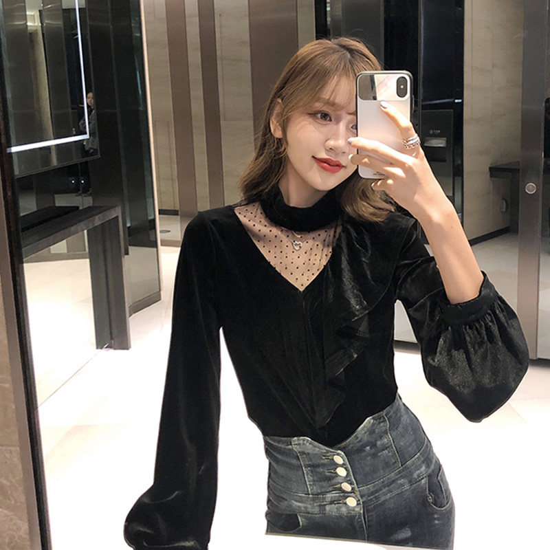 Кружевной шелковый приятный телу весенний осенний демисезонный бархатный лонгслив, в западном стиле, 2020 года