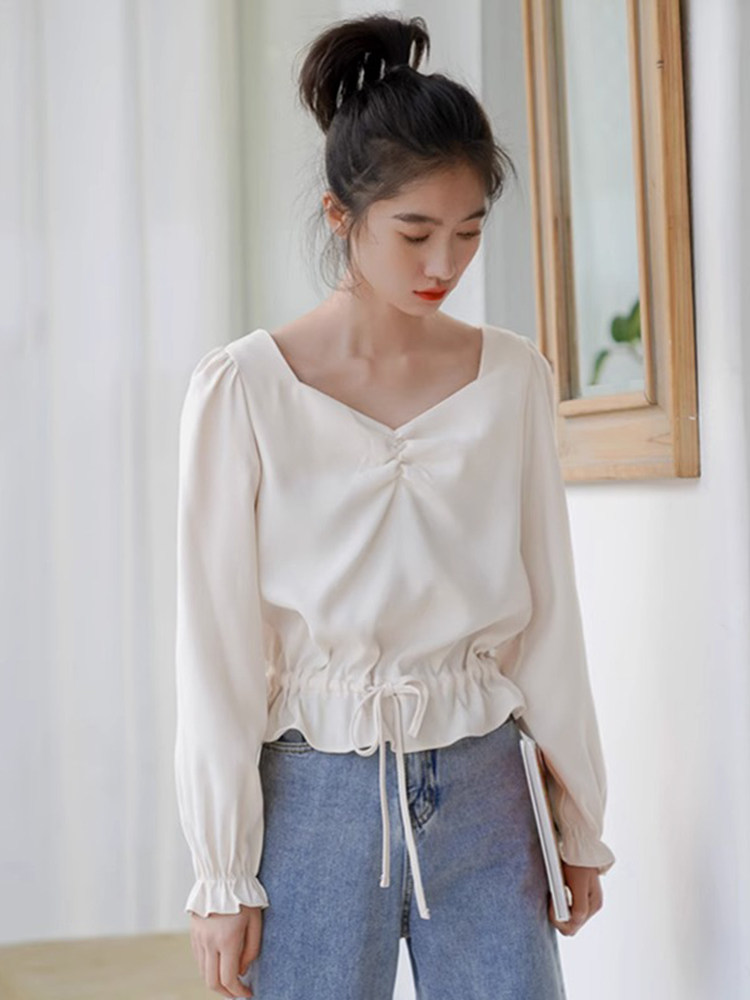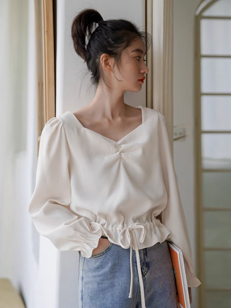 Дизайнерский мегафон, шифоновый лонгслив, осенняя рубашка, свежий корсет