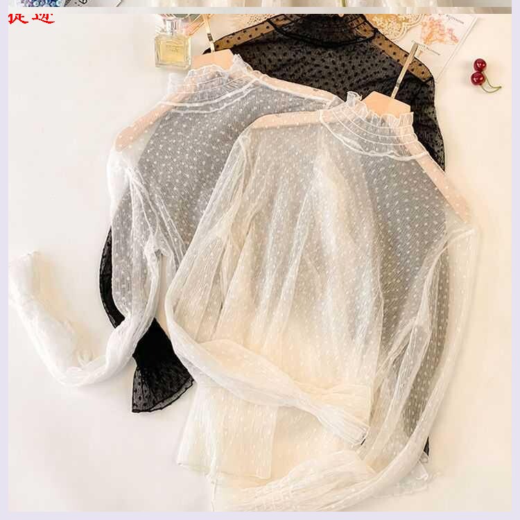 Новое расклешенное рукав сетчатое платье полость кружевная рубашка сетчатая рубашка для футболища летняя топ для женщин лето