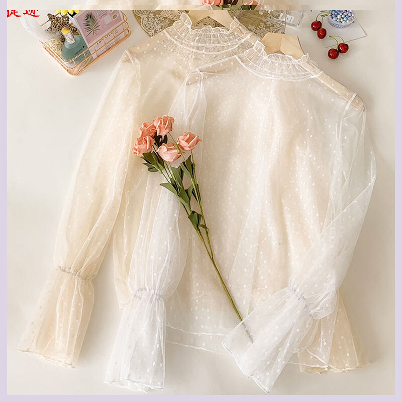 Новое расклешенное рукав платье сетки полость кружевная рубашка сетка рубашка летняя свободная топ для женщин [25 февраля