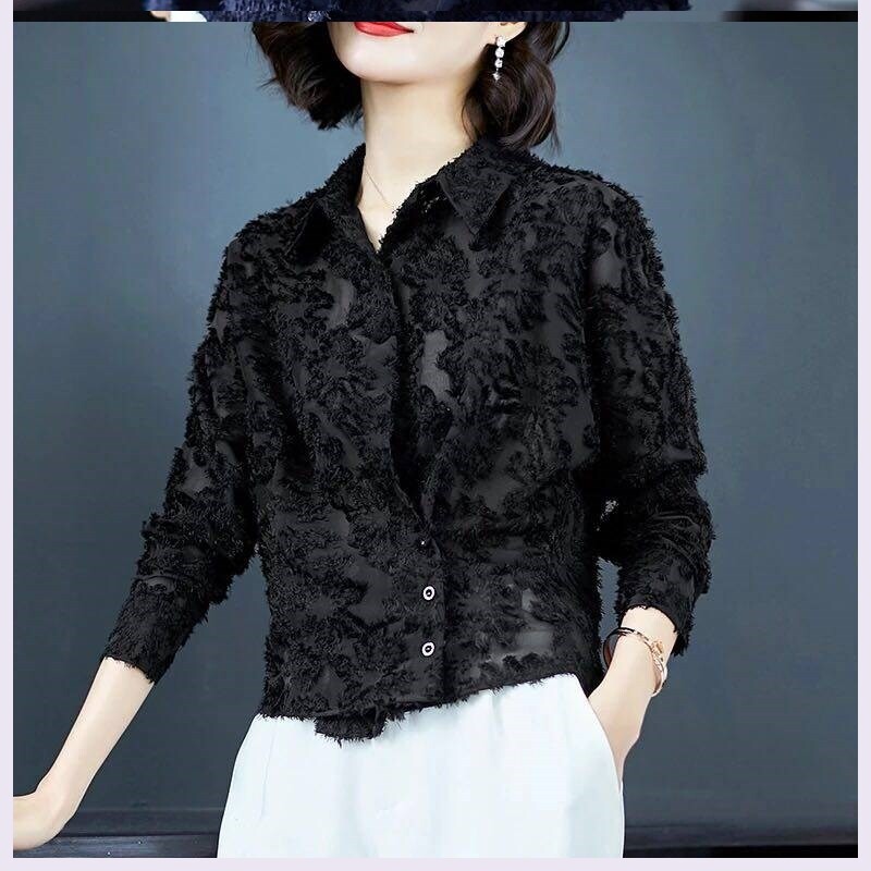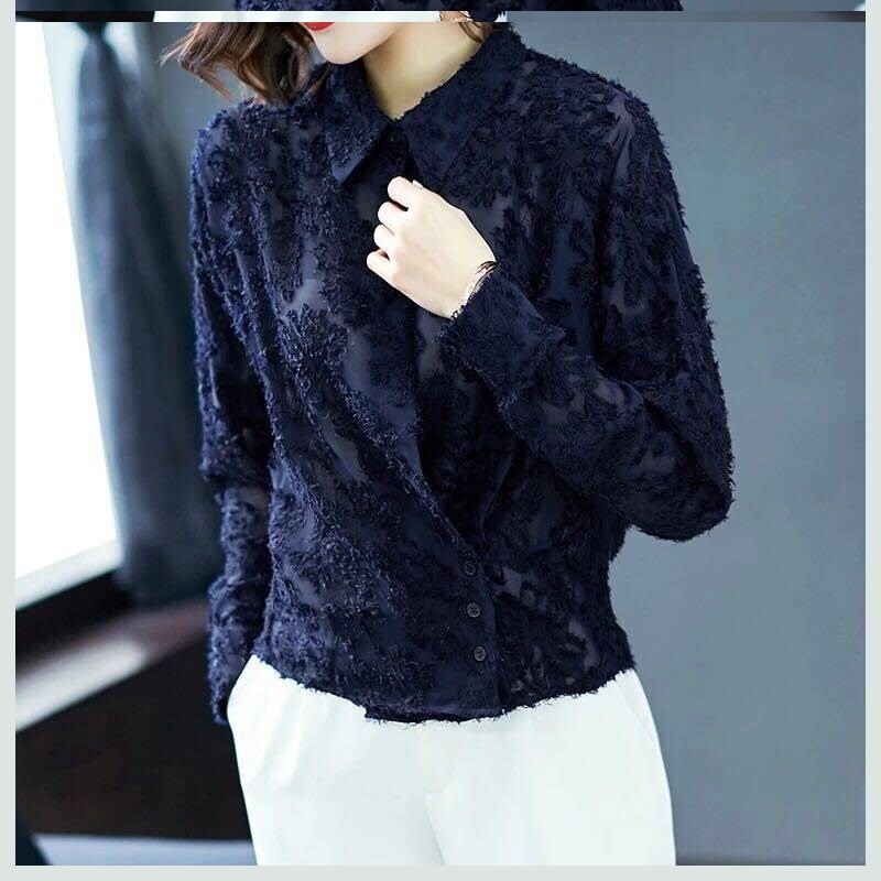 Кружевная осенняя шифоновая короткая базовая рубашка, 2020, в корейском стиле, большой размер