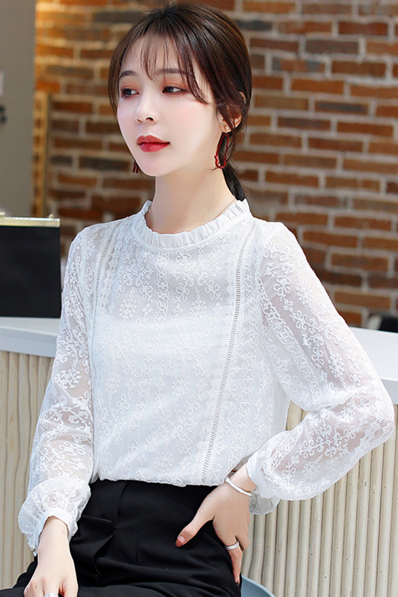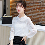 Кружевная осенняя базовая белая рубашка, высокий воротник, коллекция 2021, в корейском стиле