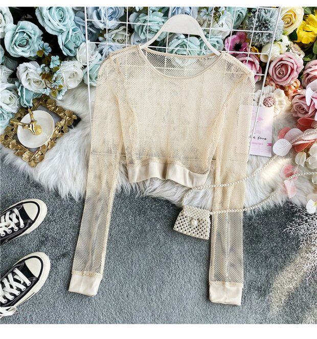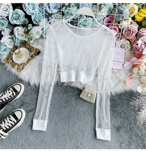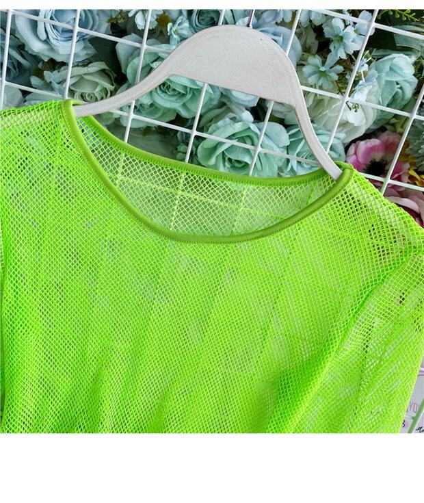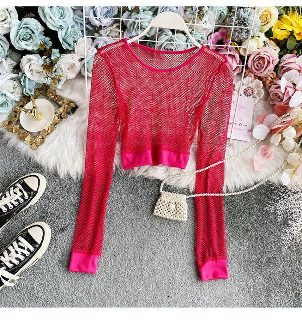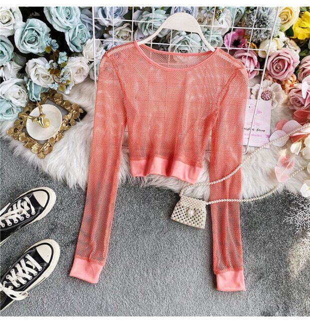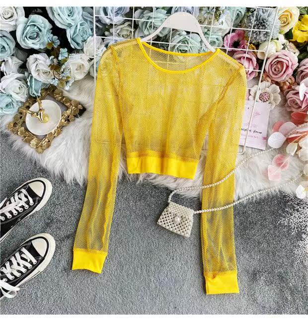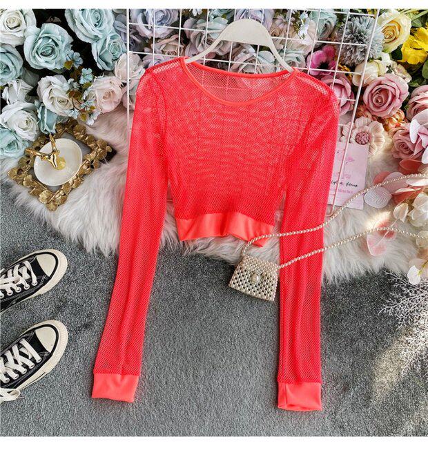 Летняя футболка, короткий базовый флуоресцентный лонгслив, высокая талия