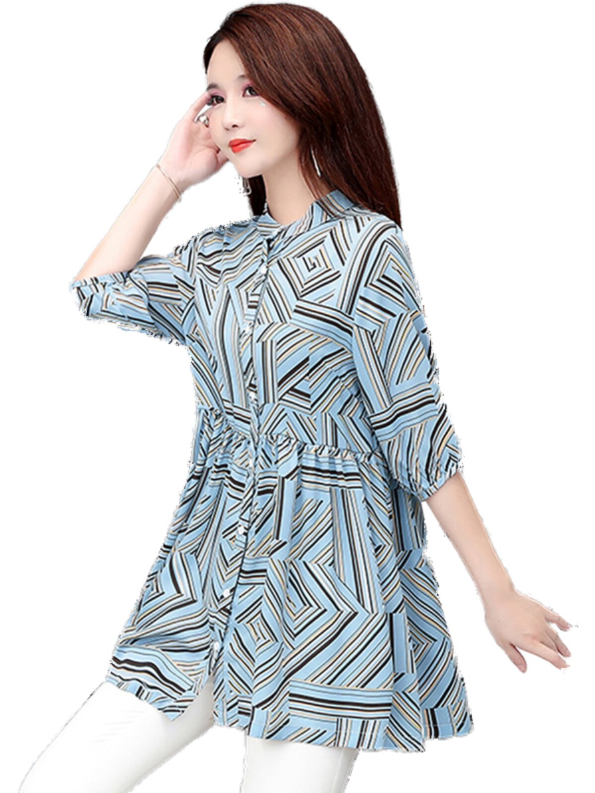 Шифоновая летняя рубашка, модная футболка для матери, короткий рукав, свободный крой