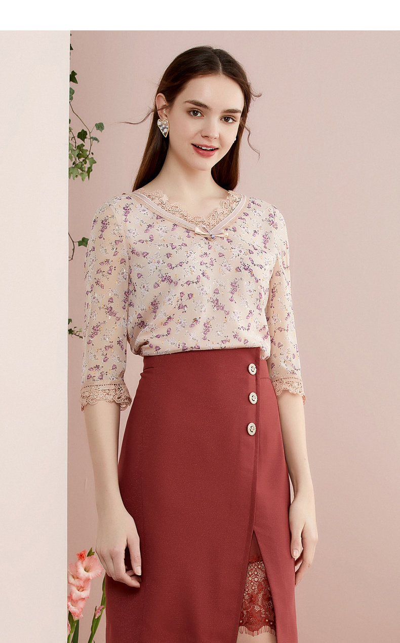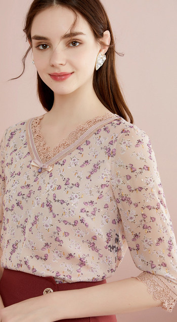 Cole Tier 2020, женский осенне-зимний новый модный кружевной шифоновый топ с v-образным вырезом и цветочным принтом в стиле ретро с рукавами три четверти