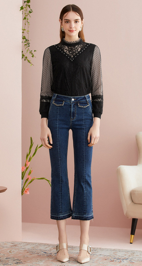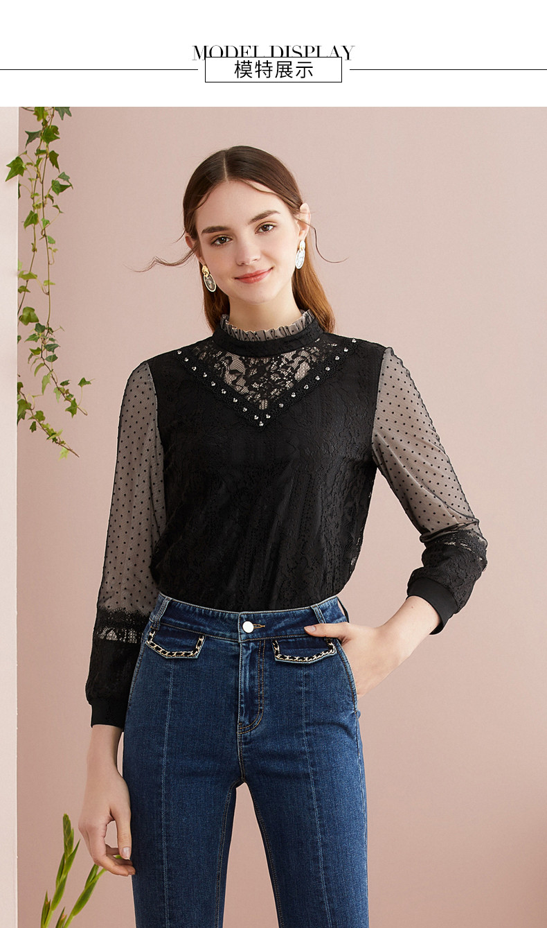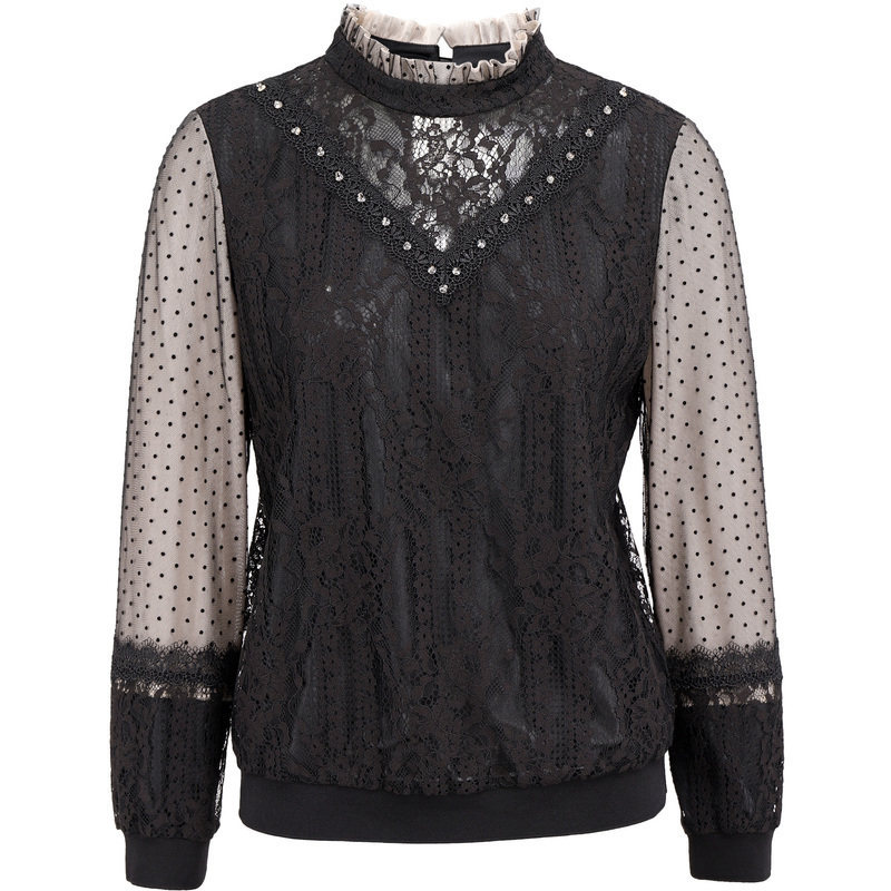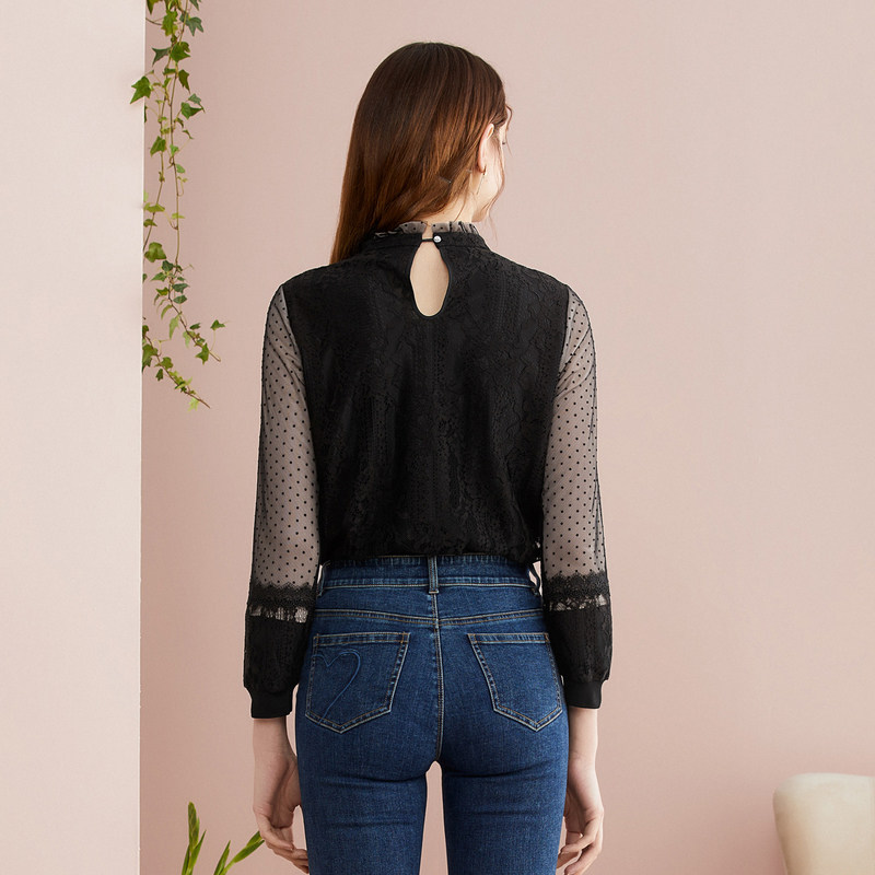 Демисезонный модный короткий кружевной лонгслив, короткая рубашка, 2020, в западном стиле