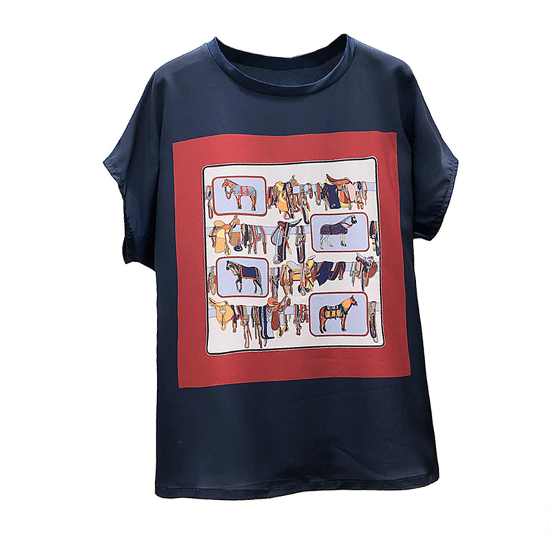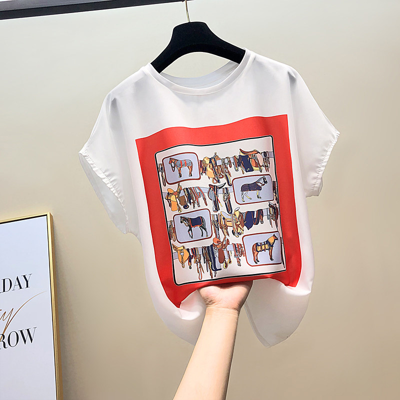 Шифоновая летняя мультяшная футболка с коротким рукавом, шифоновая с принтом, в корейском стиле, свободный крой, в западном стиле