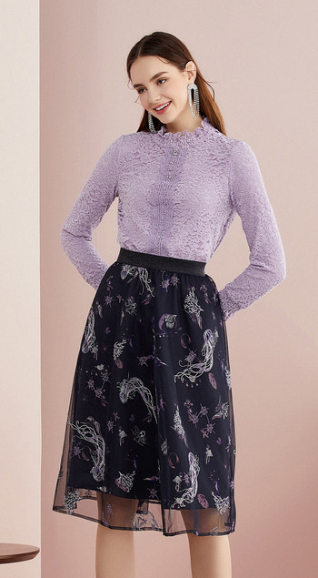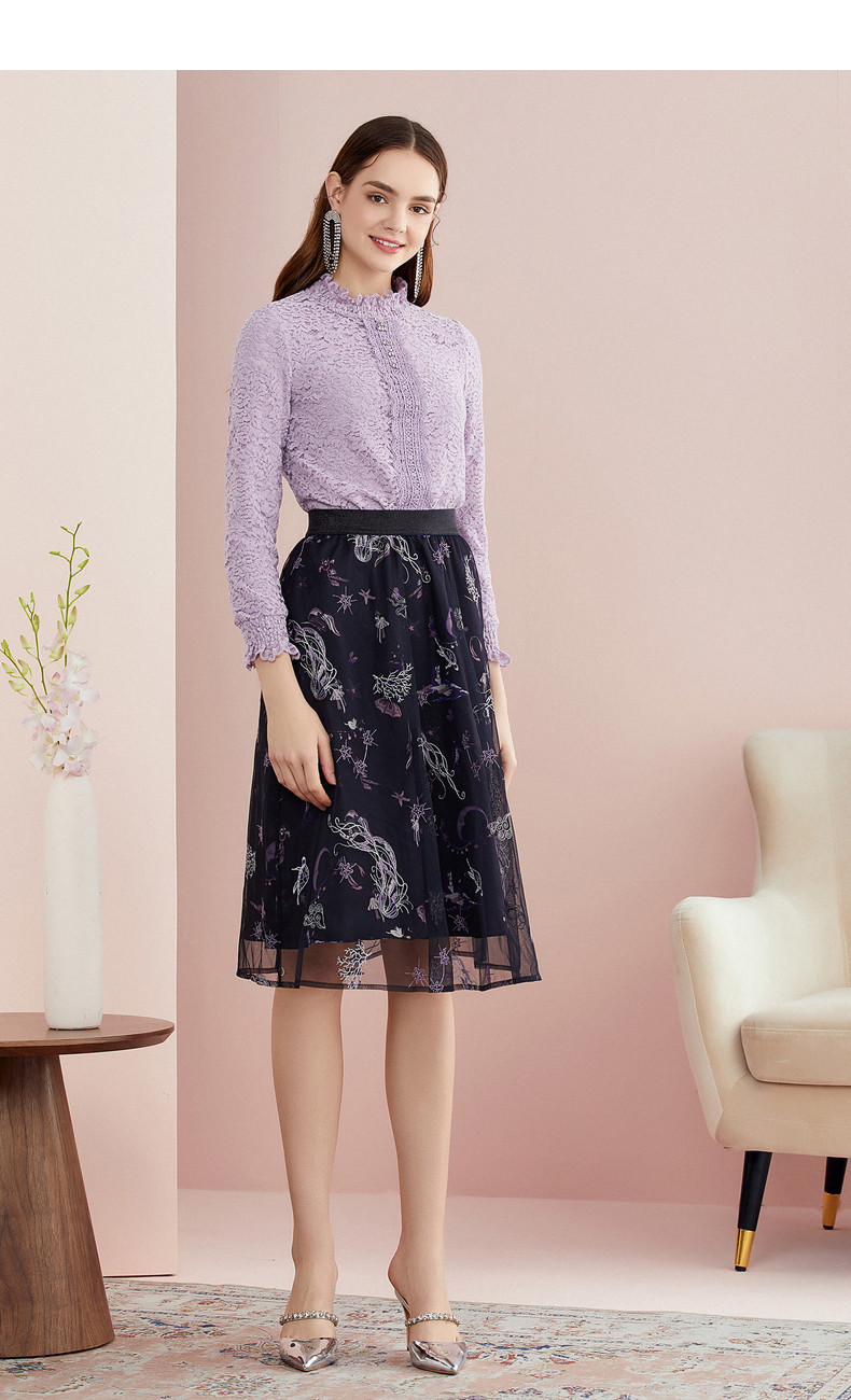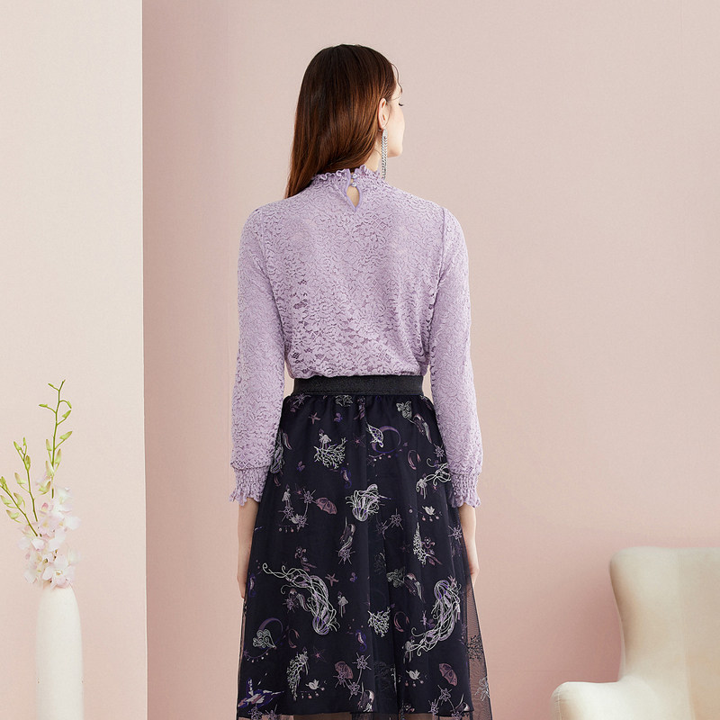 Келатиэль осень и зимняя одежда Новая женская одежда Элегантная, атмосферная, свободная и достойная стойкая кружевная рубашка Короткая топ для женщин