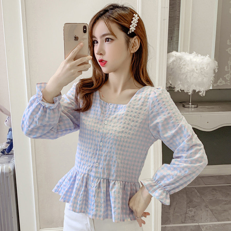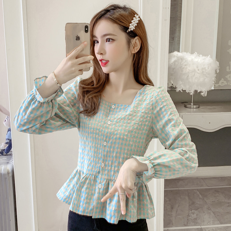 Осенняя рубашка, милый корсет, лонгслив, французский стиль, квадратный вырез, 2020, в корейском стиле