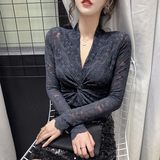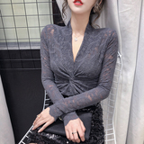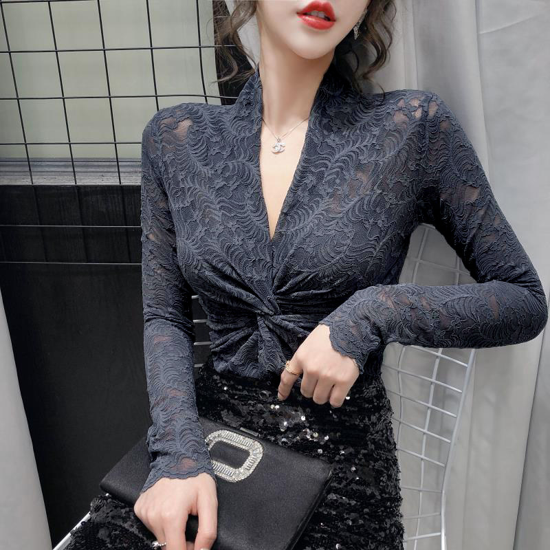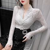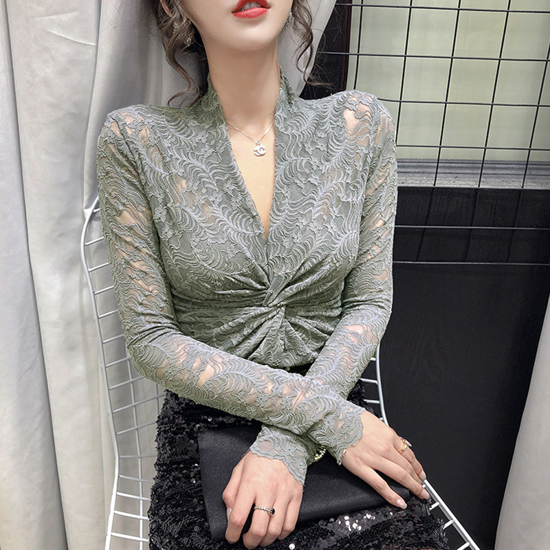 Крестная кружевная базовая рубашка женственная половина 2020 Осень Осенний Новый Темперамент Внутренний Тесный Вербар Рубашки с V-образным вырезом