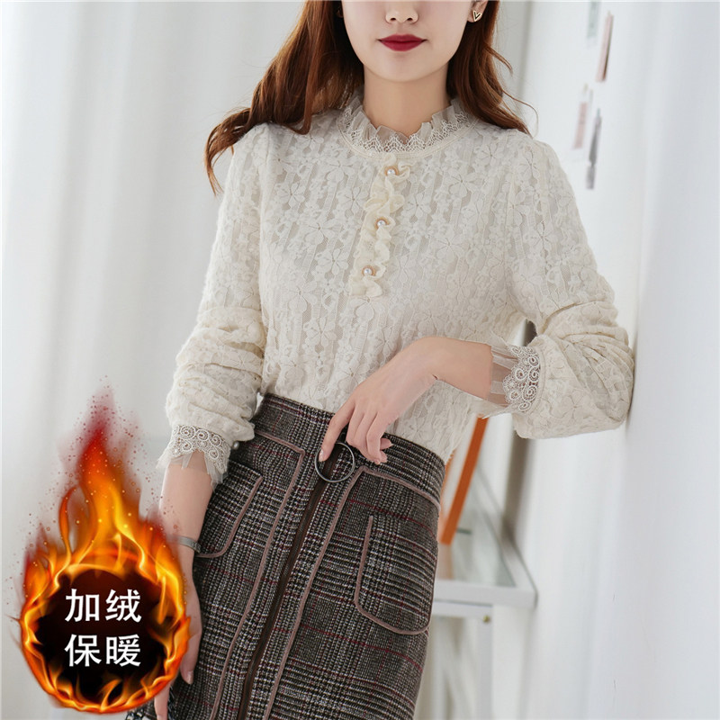 Кружевной флисовый базовый приятный телу демисезонный лонгслив, большой размер, высокий воротник, 2020, оверсайз