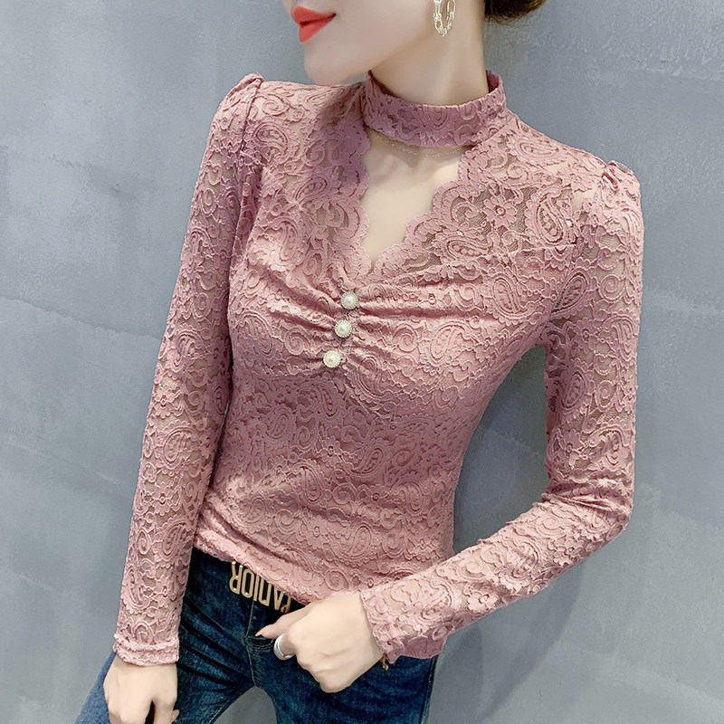 Осенний сексуальный кружевной шелковый модный приятный телу лонгслив, европейский стиль, коллекция 2021, в западном стиле