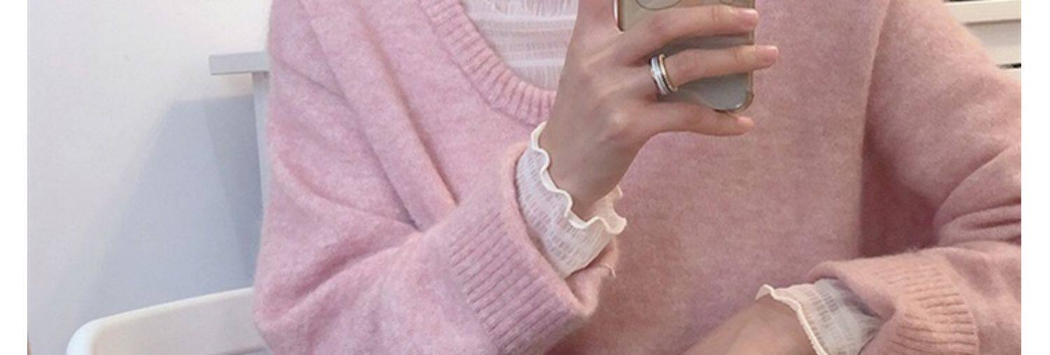 Кружевной шелковый приятный телу утепленный свитер, в западном стиле
