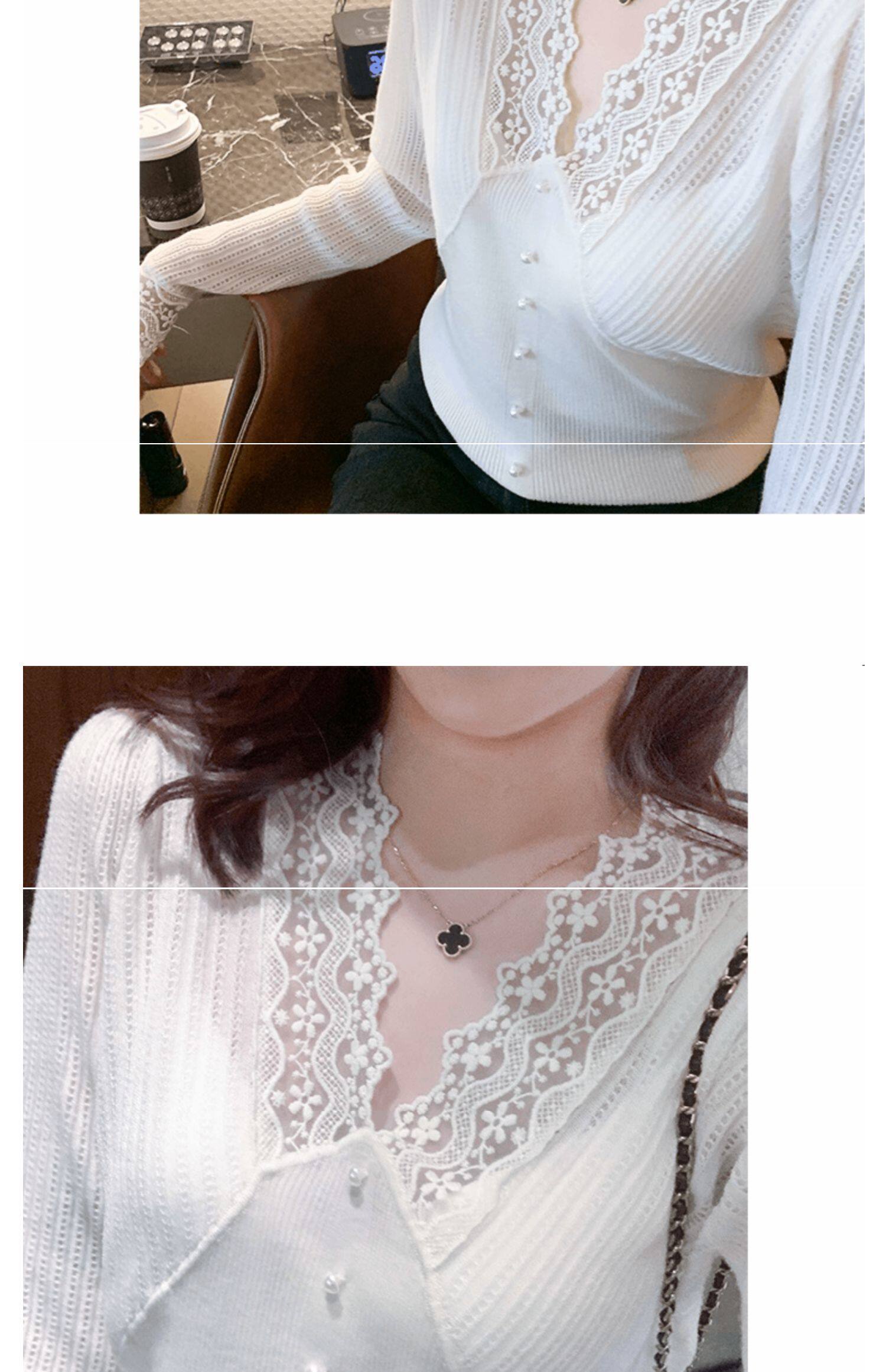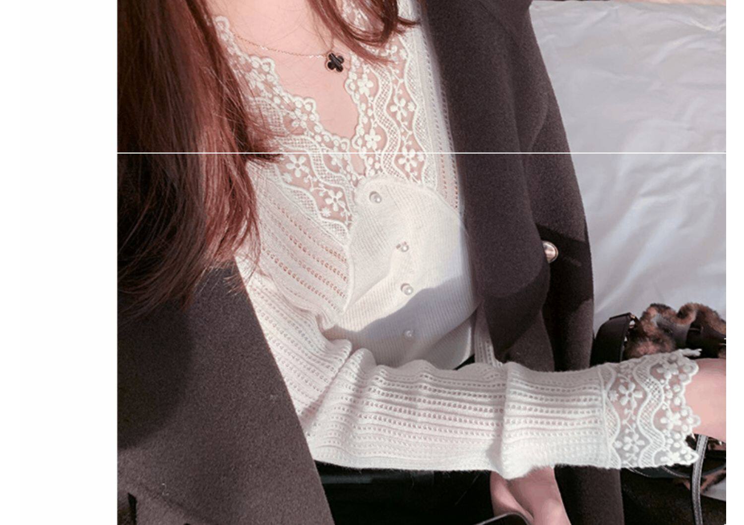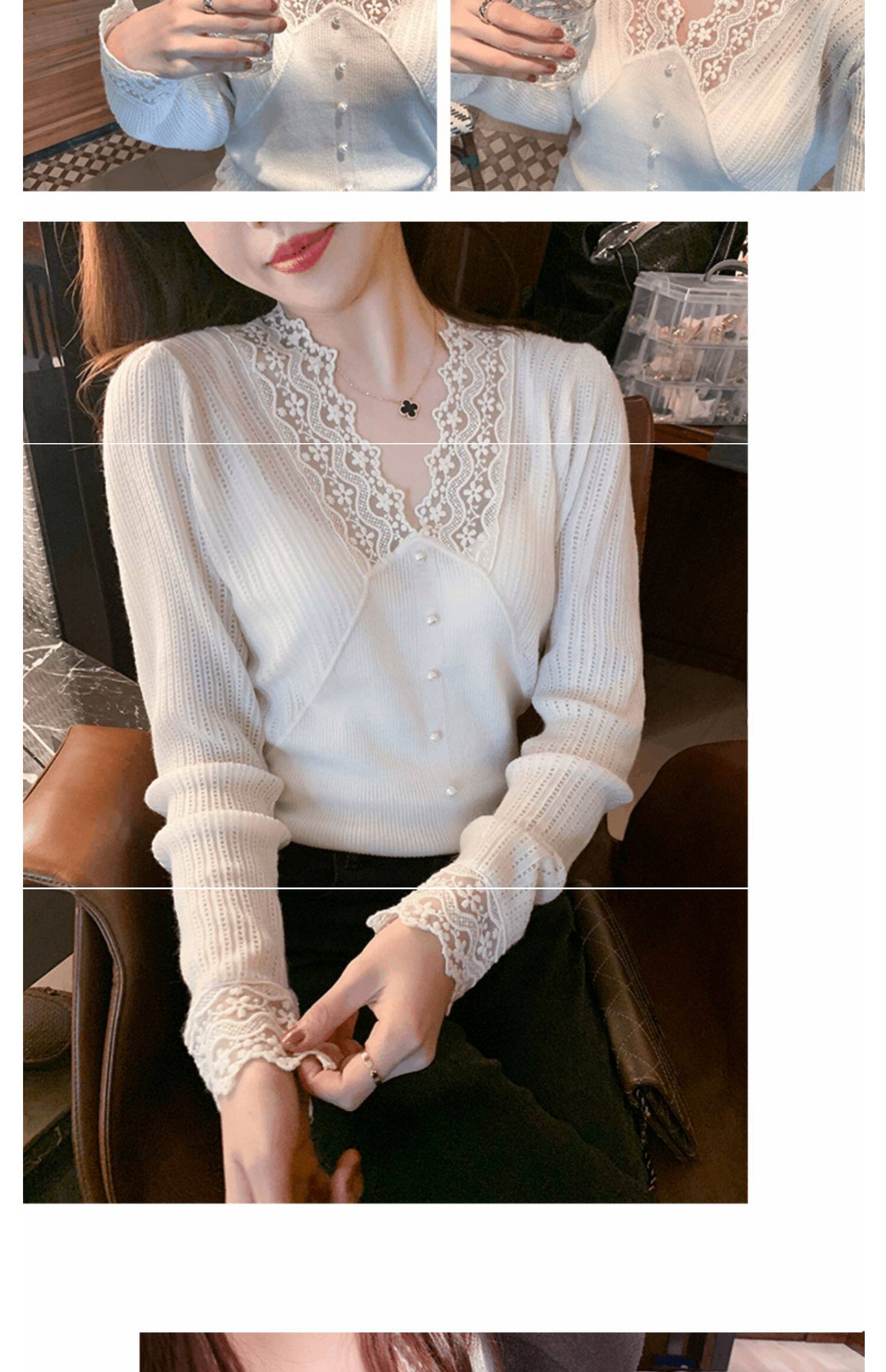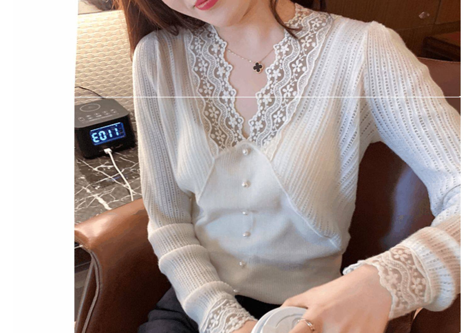 Сексуальная кружевная рубашка с кружевным вырезом для женщин осенью и зимой 2020 г. Новая универсальная подходящая рубашка и модный топ