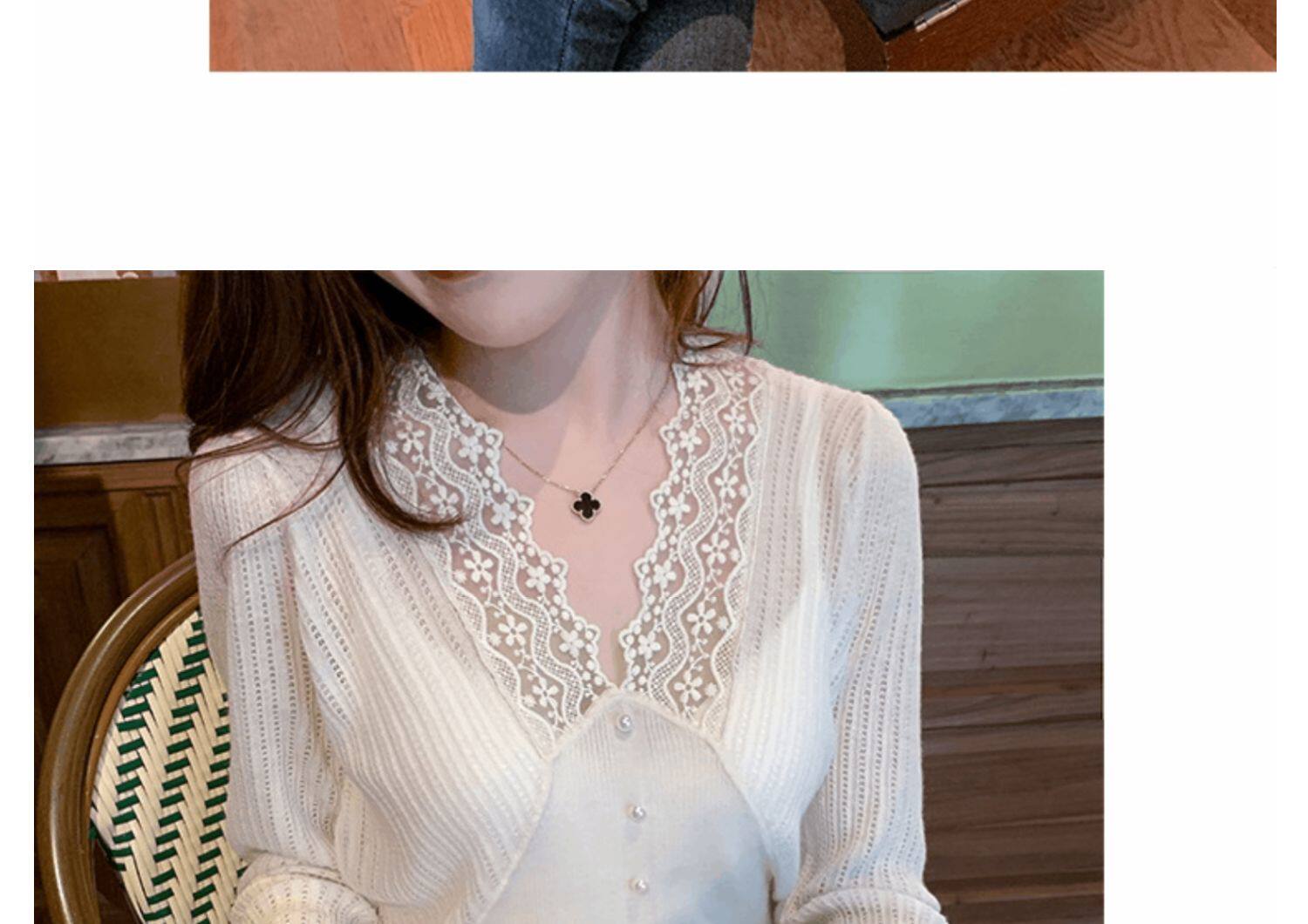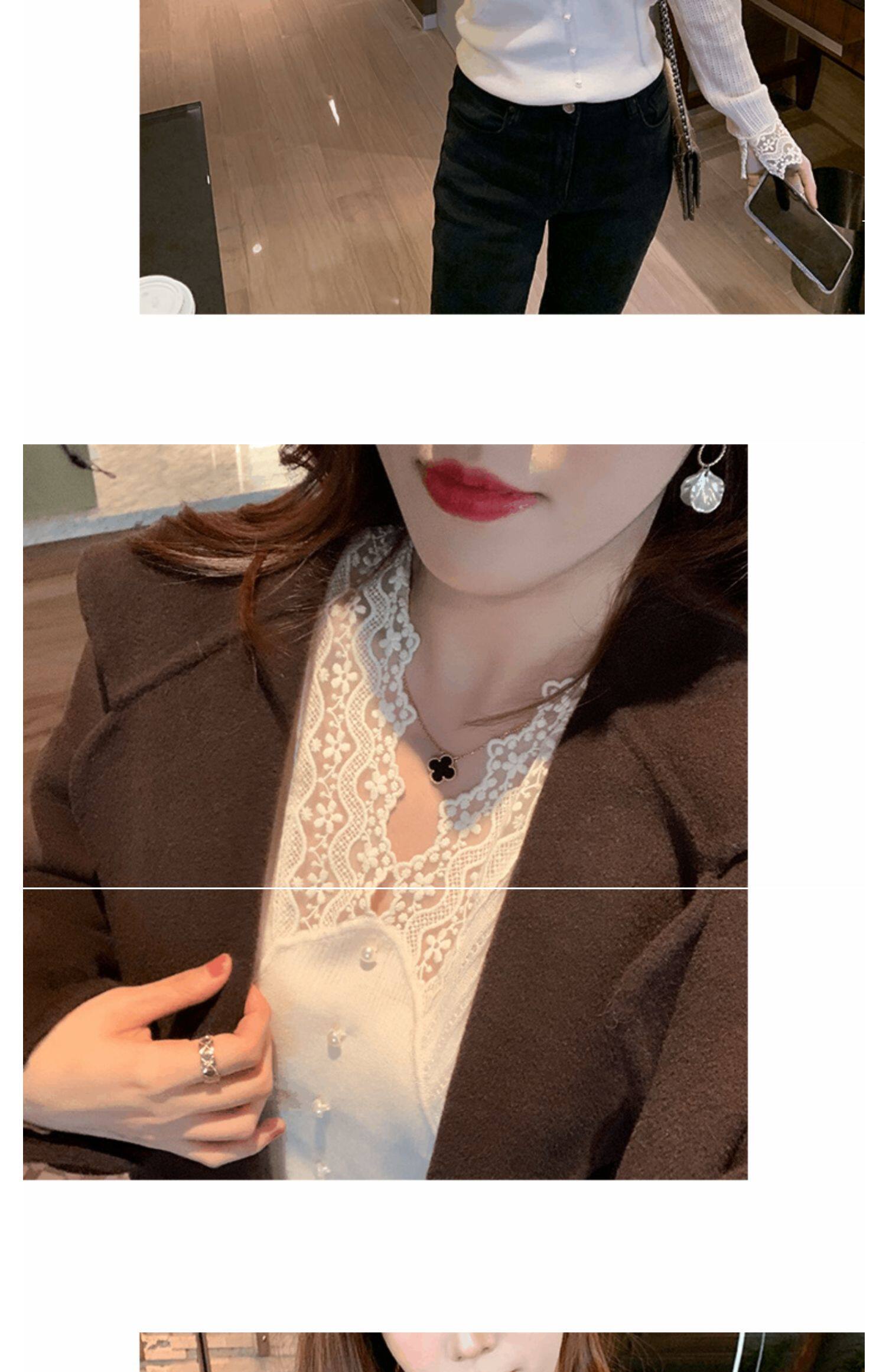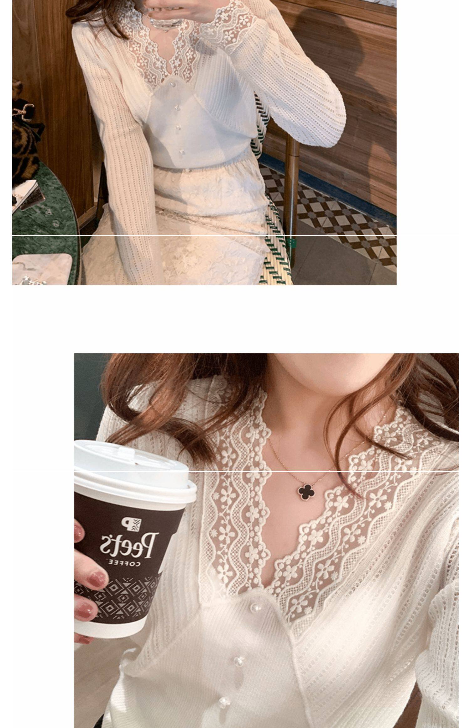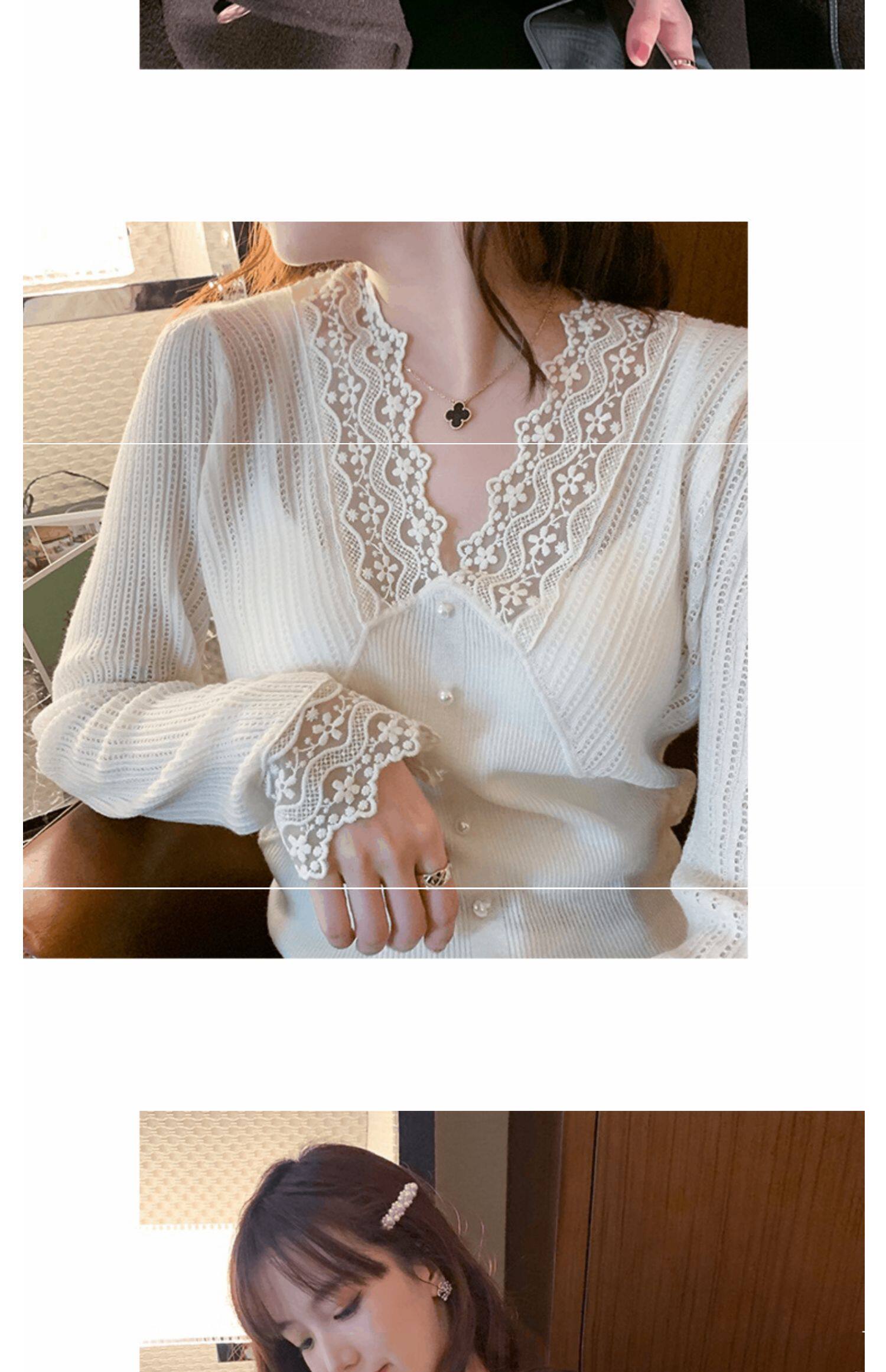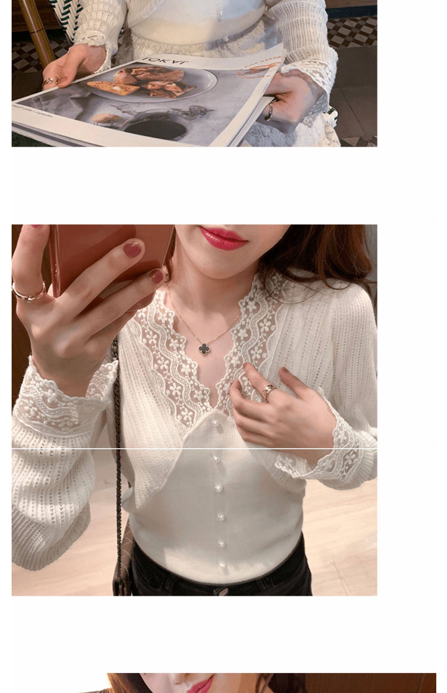 Сексуальная кружевная рубашка с кружевным вырезом для женщин осенью и зимой 2020 г. Новая универсальная подходящая рубашка и модный топ