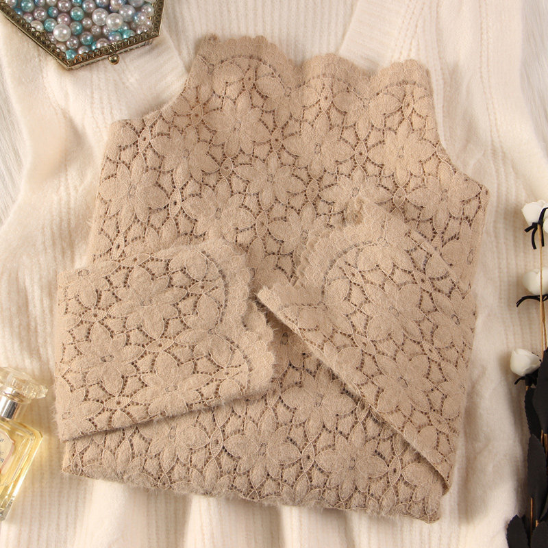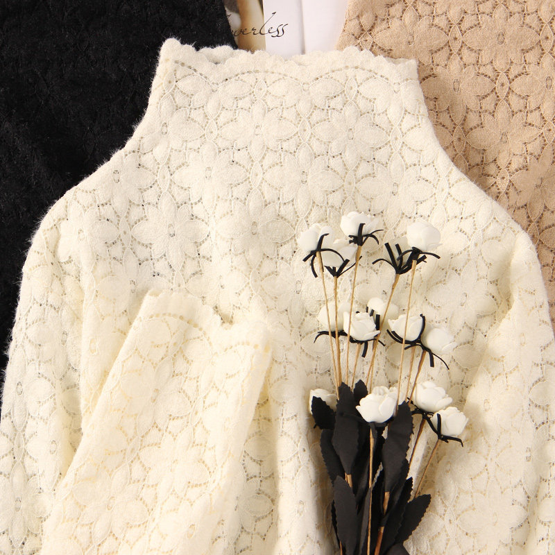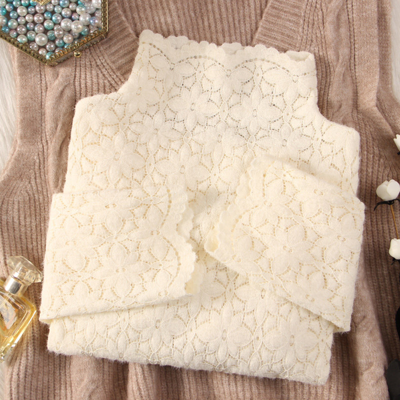 Утепленный кружевной лонгслив, свитер, в западном стиле