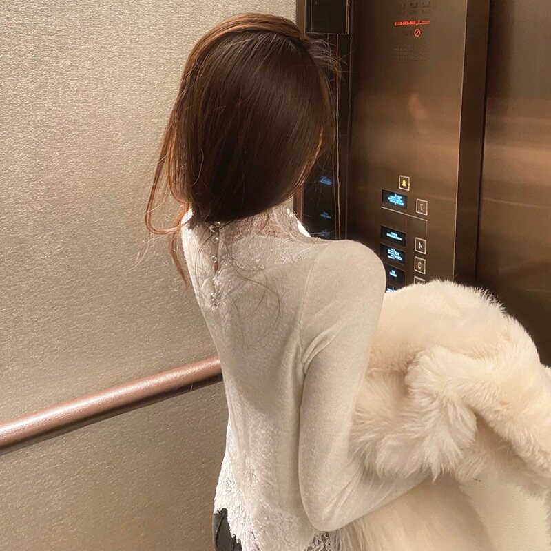 Кружевая базовая рубашка для женщин осенью и зимой Новая модная высококачественная рубашка для универсального внутреннего утолщенного и пушистого топа