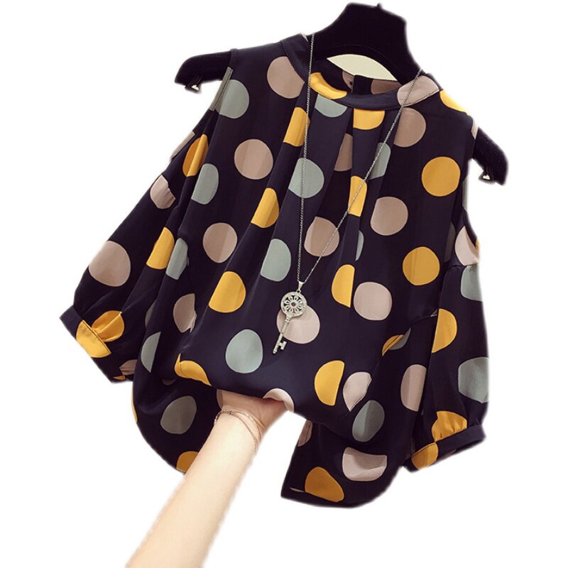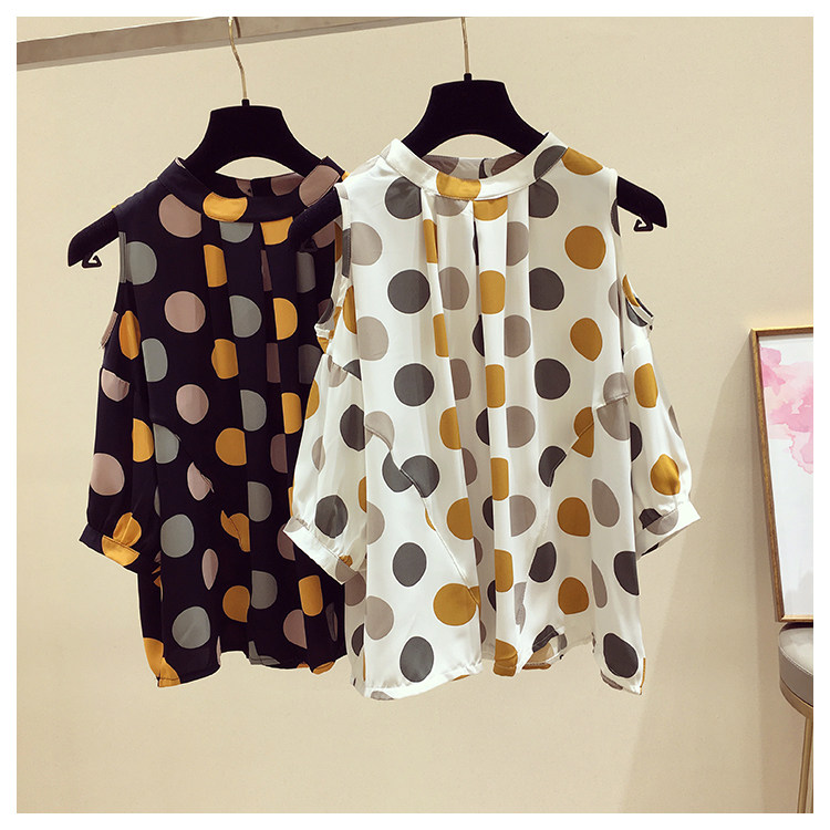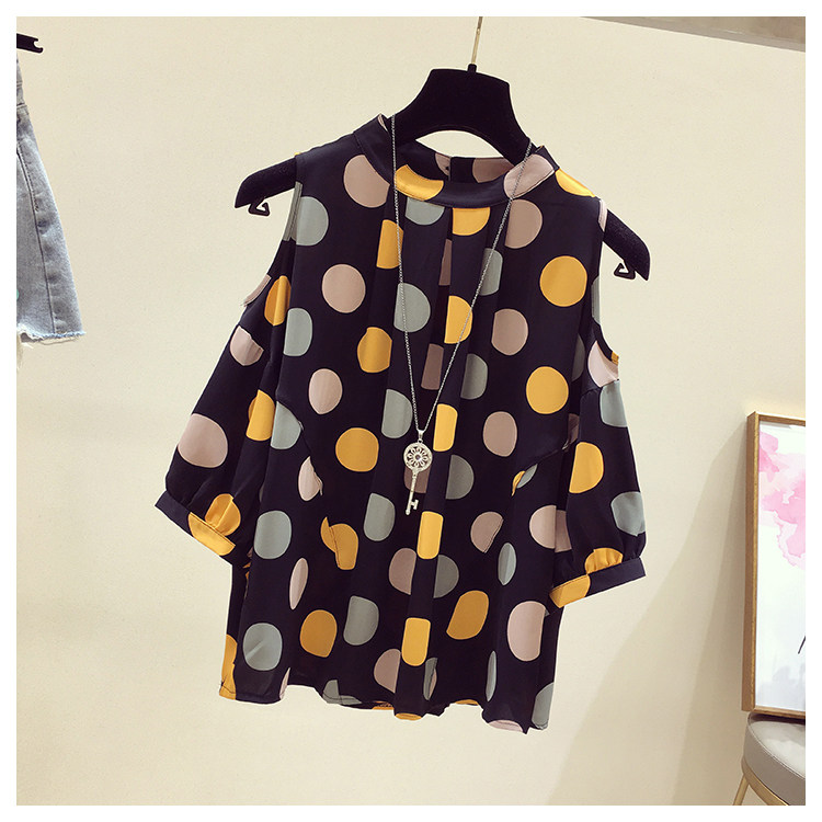 Бренд -дисконтный магазин искренний женская ткань срезана стойка снятого шкафа Clear Warehouse Wave Dot -Shoulder Chifon Rubor Women Cover Cover Belly Complete Ryeves