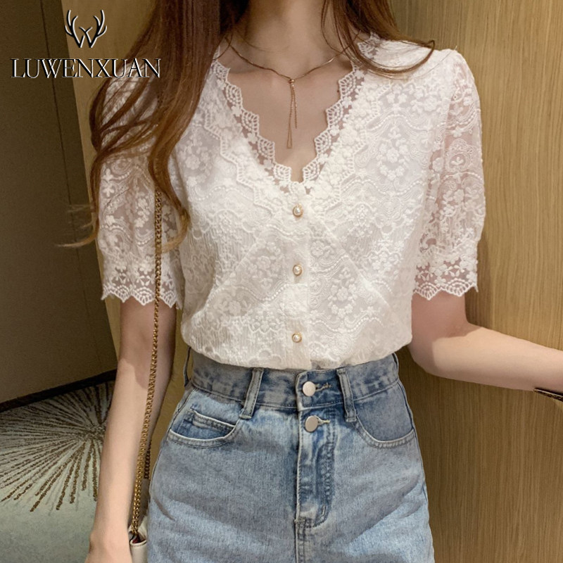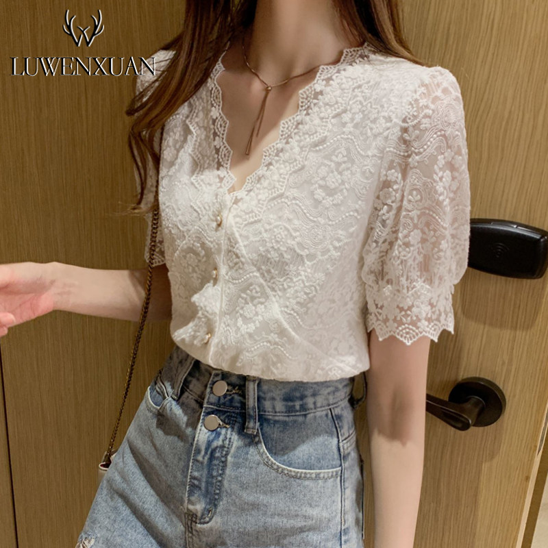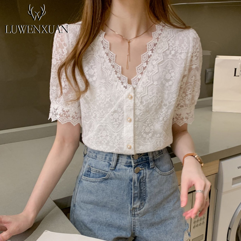 Кружевная шелковая летняя летняя одежда, рубашка, 2021 года, короткий рукав, в западном стиле, французский стиль