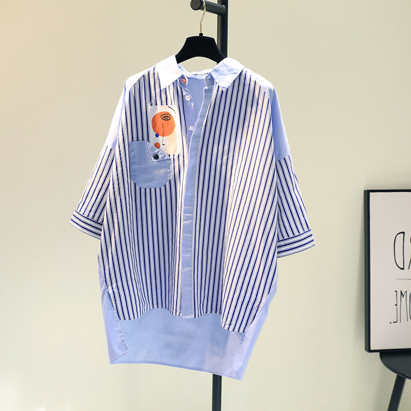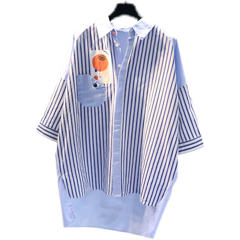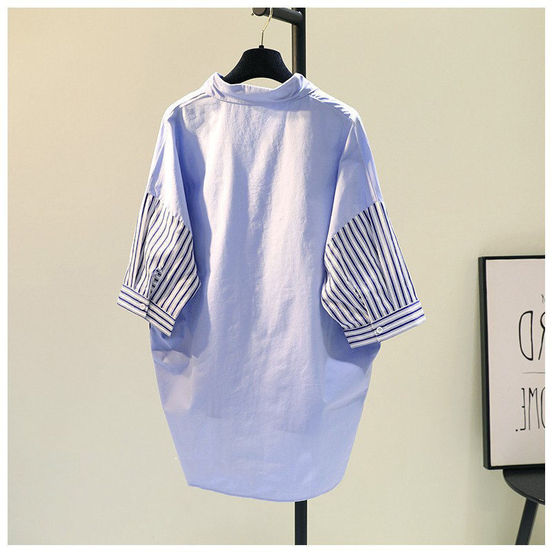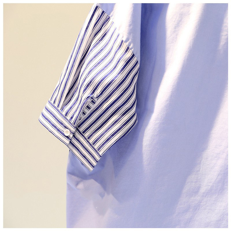 Брендовая синяя длинная рубашка, короткий рукав, с рукавом, средней длины