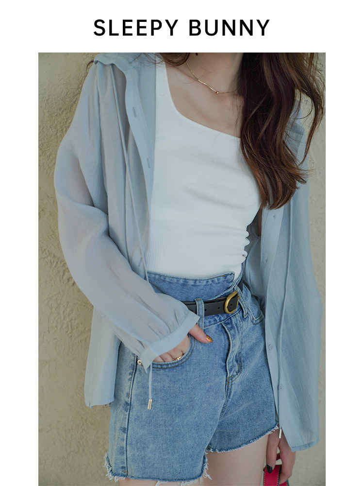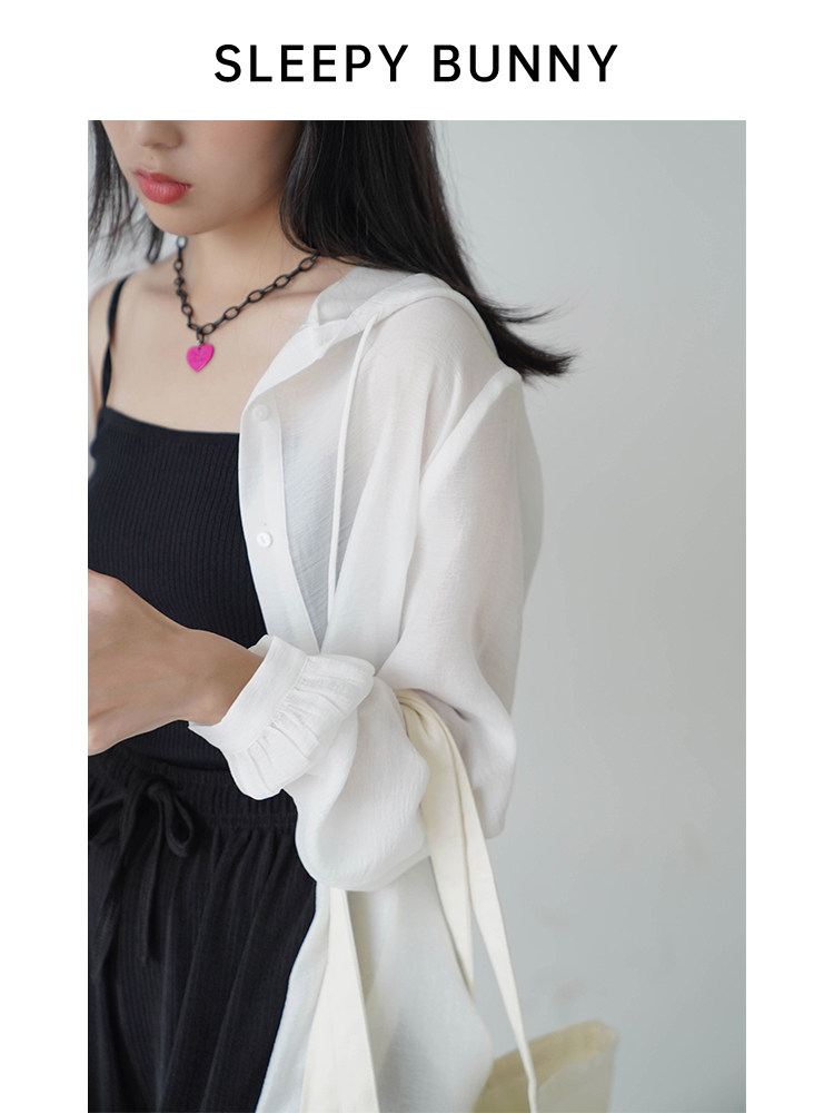 Легкая плиссированная текстура Sleepy Rabbit, повседневная солнцезащитная рубашка с капюшоном для женщин, летний трепещущий сказочный шифоновый французский топ