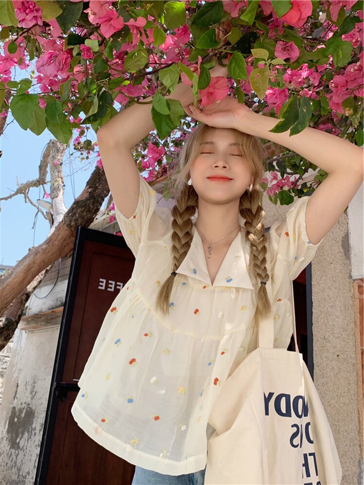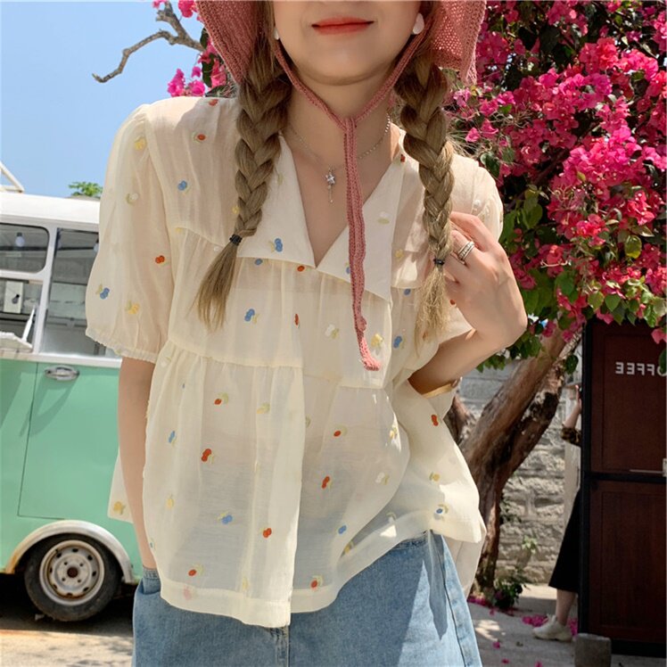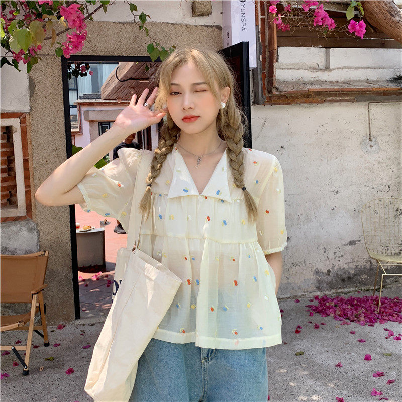 Короткая шифоновая милая кукла, французский стиль, рукава фонарики, большой размер
