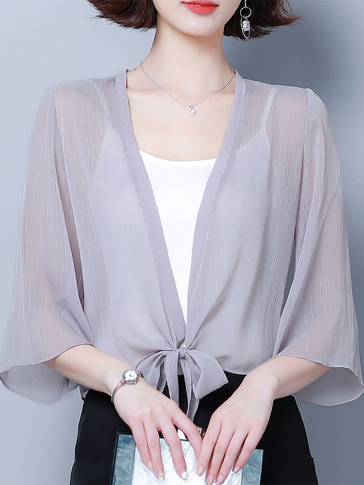 Шифоновая накидка, летнее платье-комбинация, тонкий кардиган, футболка, защита от солнца