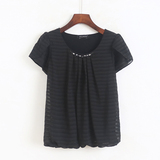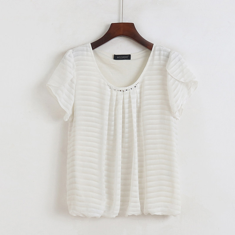 Шифоновый мегафон, летняя рубашка с круглым воротником, оверсайз, короткий рукав