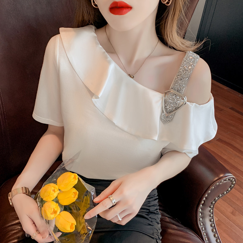 Шифоновая летняя белая тонкая футболка, в западном стиле, короткий рукав