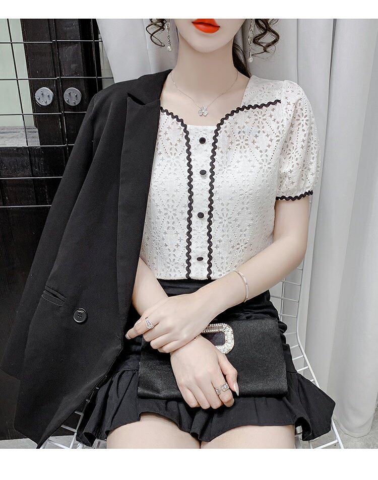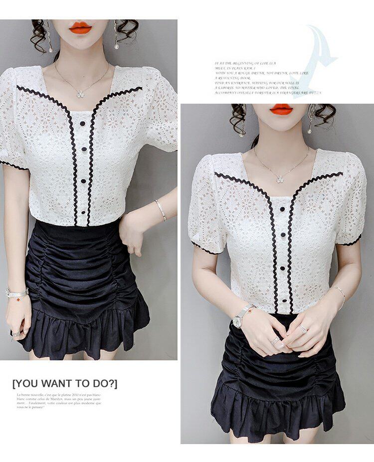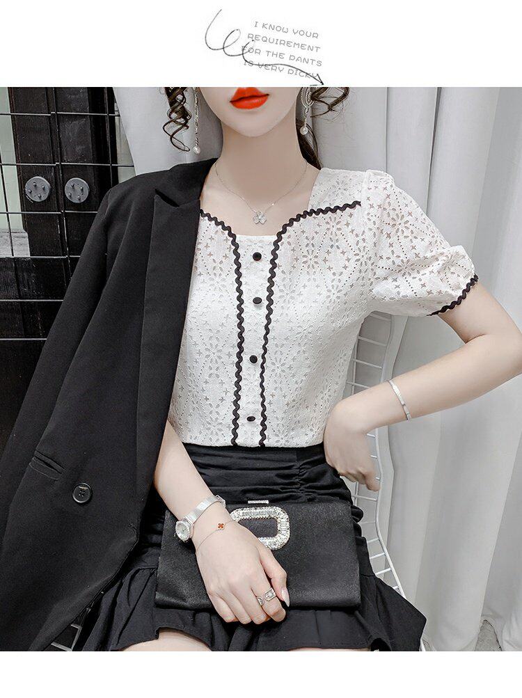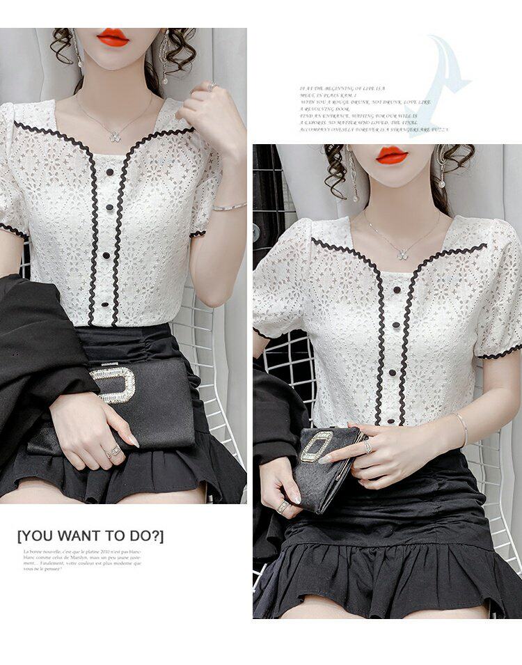 2023 Новый возраст, снижающий модный французский квадратный воротник с коротки