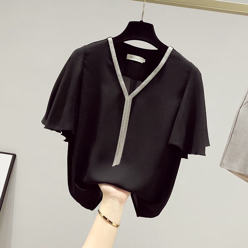 Брендовая шифоновая милая рубашка, V-образный вырез