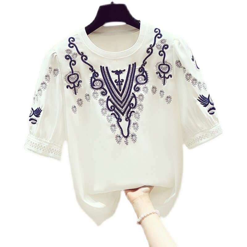 Брендовая модная шифоновая рубашка, с вышивкой, в западном стиле