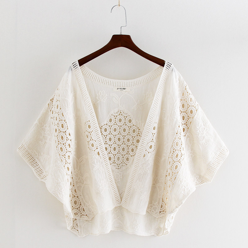 Летняя кружевная накидка, тонкая одежда для защиты от солнца, хлопковый короткий кардиган