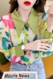 Ретро шифоновый осенний дизайнерский лонгслив, французский стиль, коллекция 2021, тренд сезона, воротник поло, оверсайз