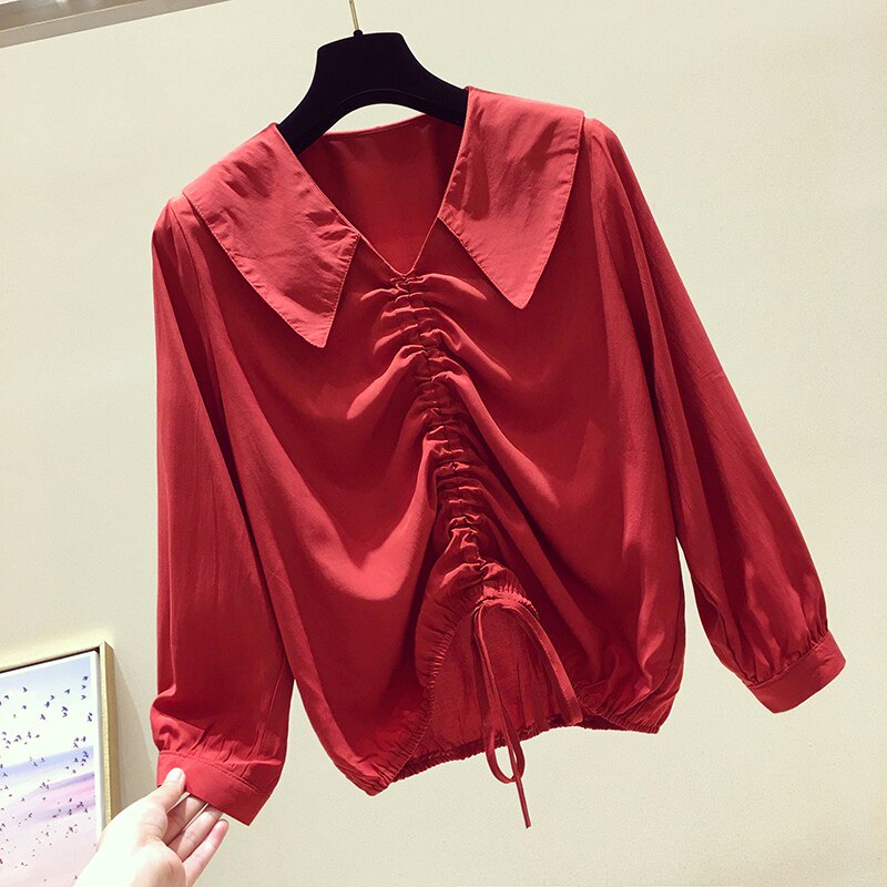 Брендовый лонгслив, шифоновая кукла, на шнурках, кукольный воротник