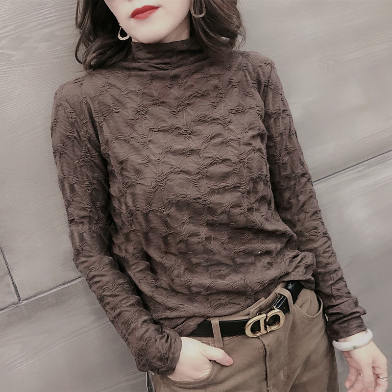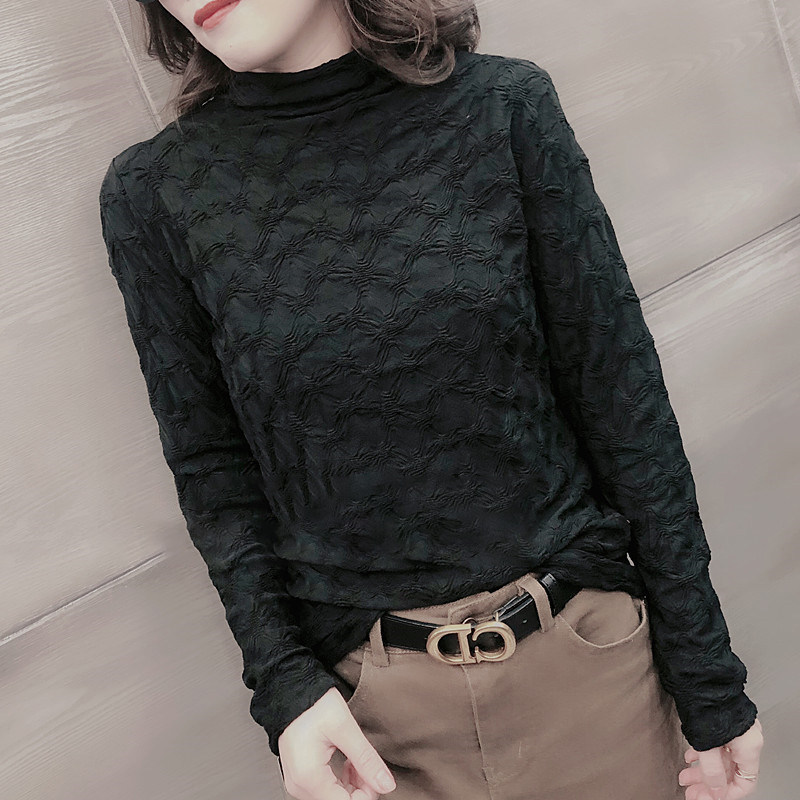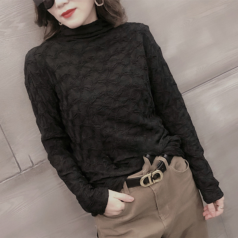 Кружевной шелковый приятный телу осенний черный лонгслив, коллекция 2021, в корейском стиле, в западном стиле
