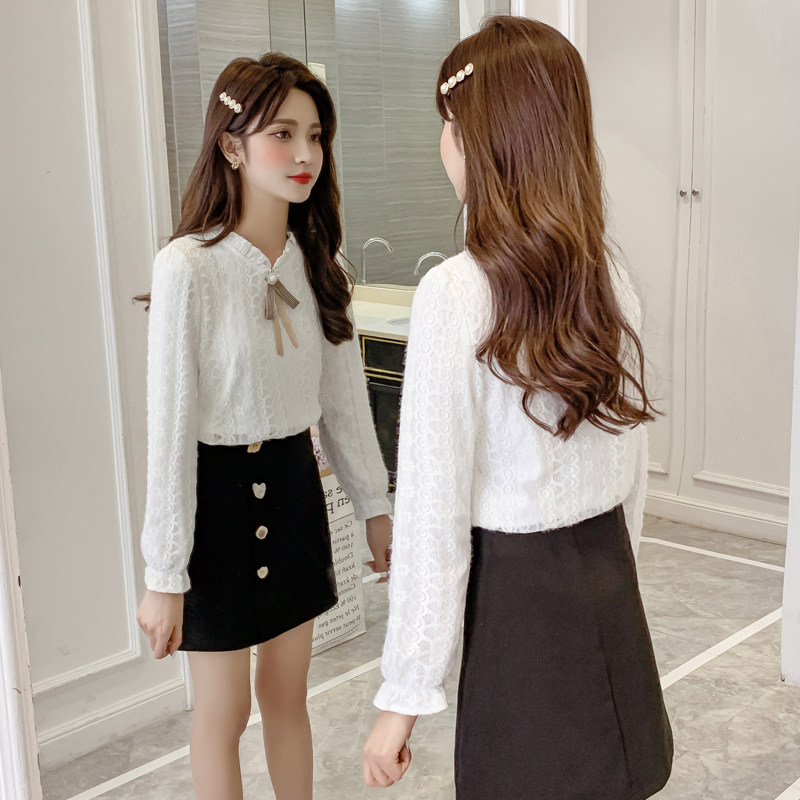 Осенняя рубашка, кружевной базовый приятный телу осенний лонгслив, 2021 года