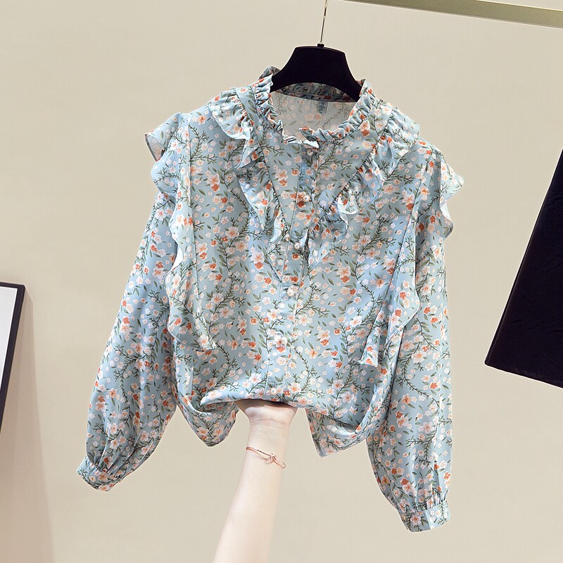 Брендовый осенний шифоновый лонгслив, цветочный принт