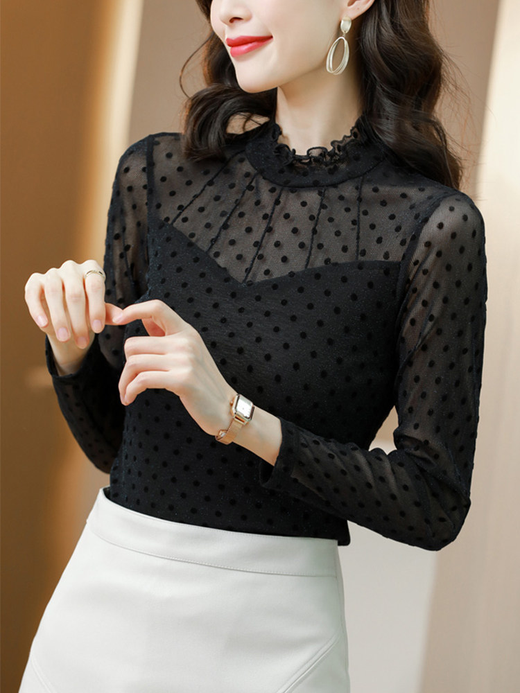 Кружевной базовый приятный телу демисезонный лонгслив, высокий воротник, в западном стиле, коллекция 2021