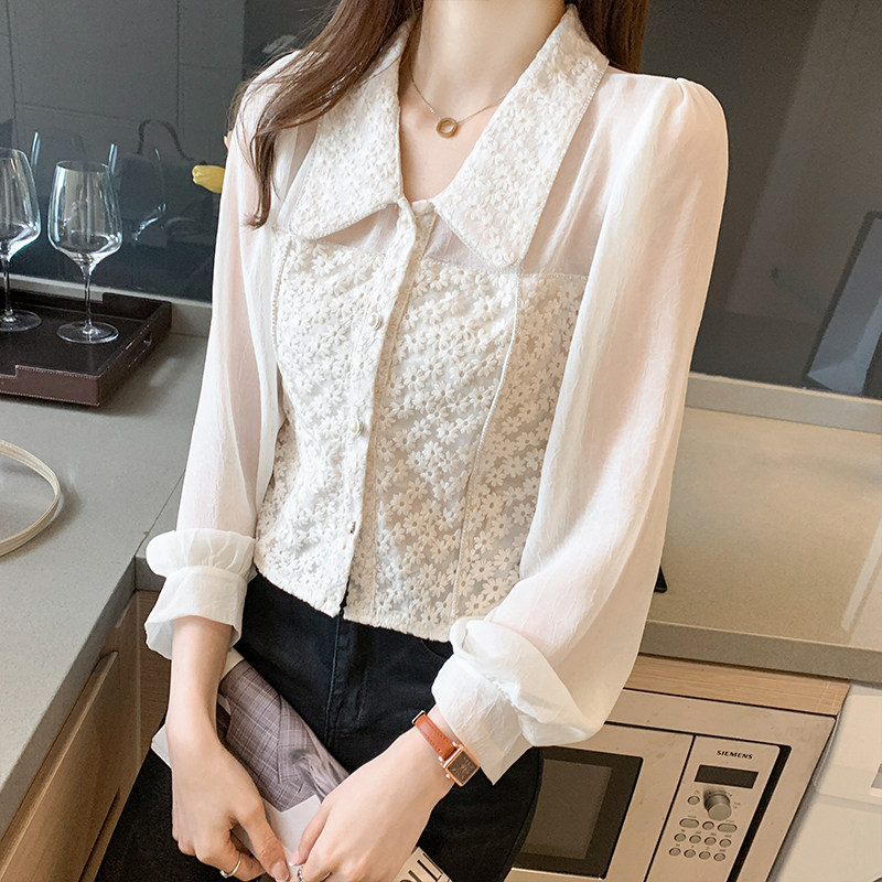 Короткие дизайнерские штаны, шифоновая кружевная рубашка, высокая талия, рукава фонарики, тренд сезона
