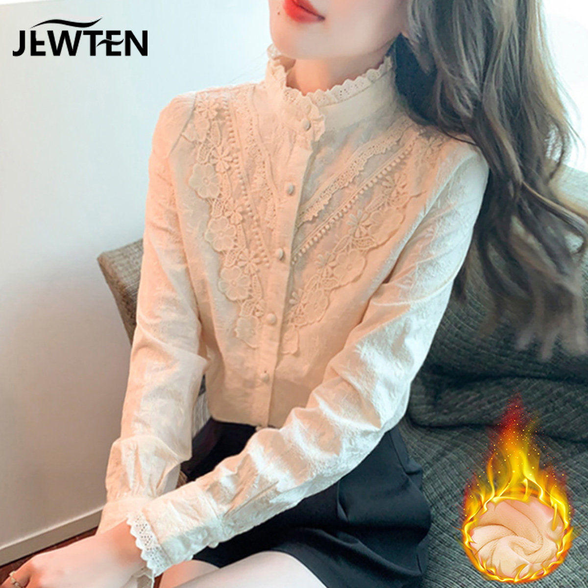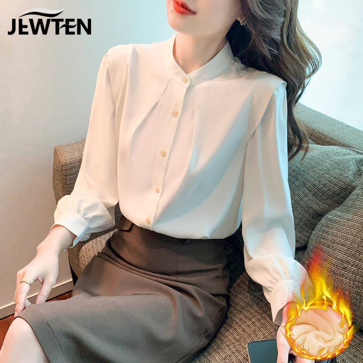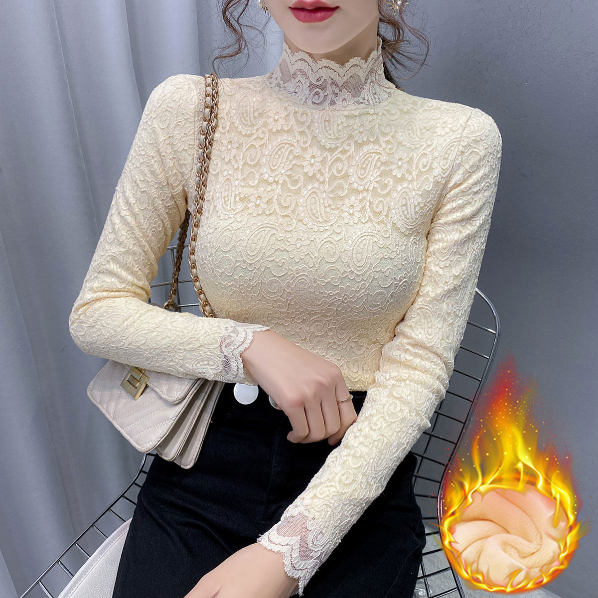 Зимнее утепленное кружевное шелковое приятное телу демисезонное термобелье, рубашка, 2021 года, в западном стиле