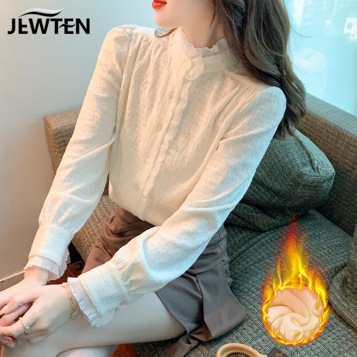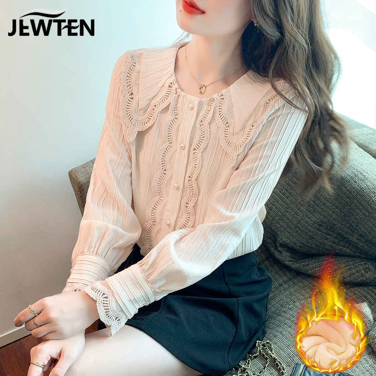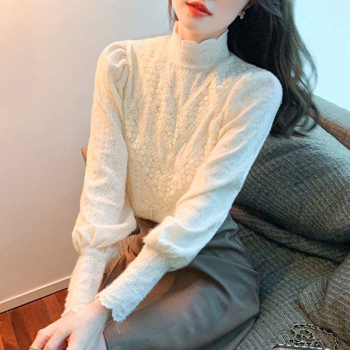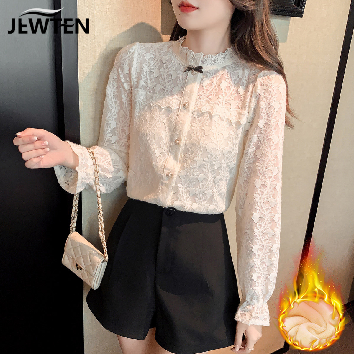 Зимнее утепленное кружевное шелковое приятное телу демисезонное термобелье, рубашка, 2021 года, в западном стиле