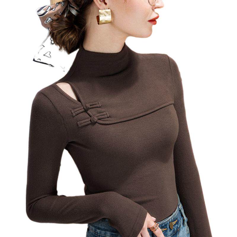 Бархатный базовый приятный телу осенний лонгслив, высокий воротник, 2023, облегающий крой