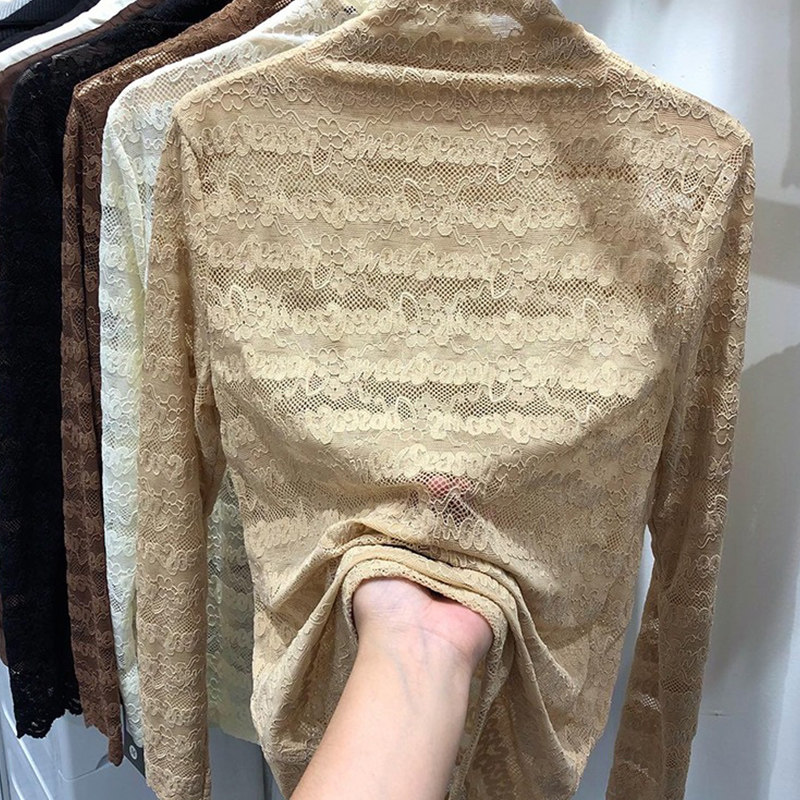 (Трансграничная торговля), брендовый кружевной шелковый приятный телу лонгслив, высокий воротник